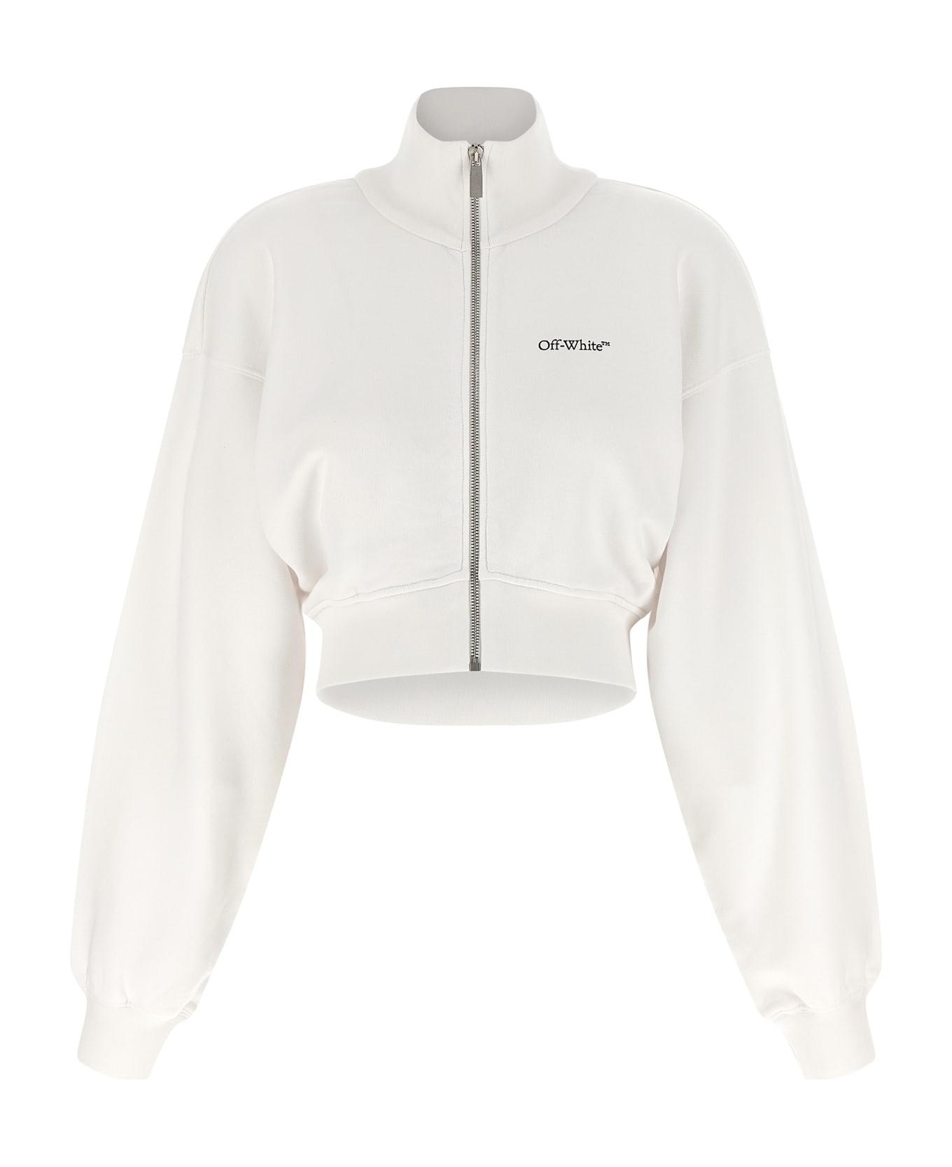 Brushed cotton sweatshirt, crop model, 'Arrow Glowing Flower' print on the back, high neck, logo print and front zip closure, long sleeves with cuffs and dropped shoulders, band on the hem.