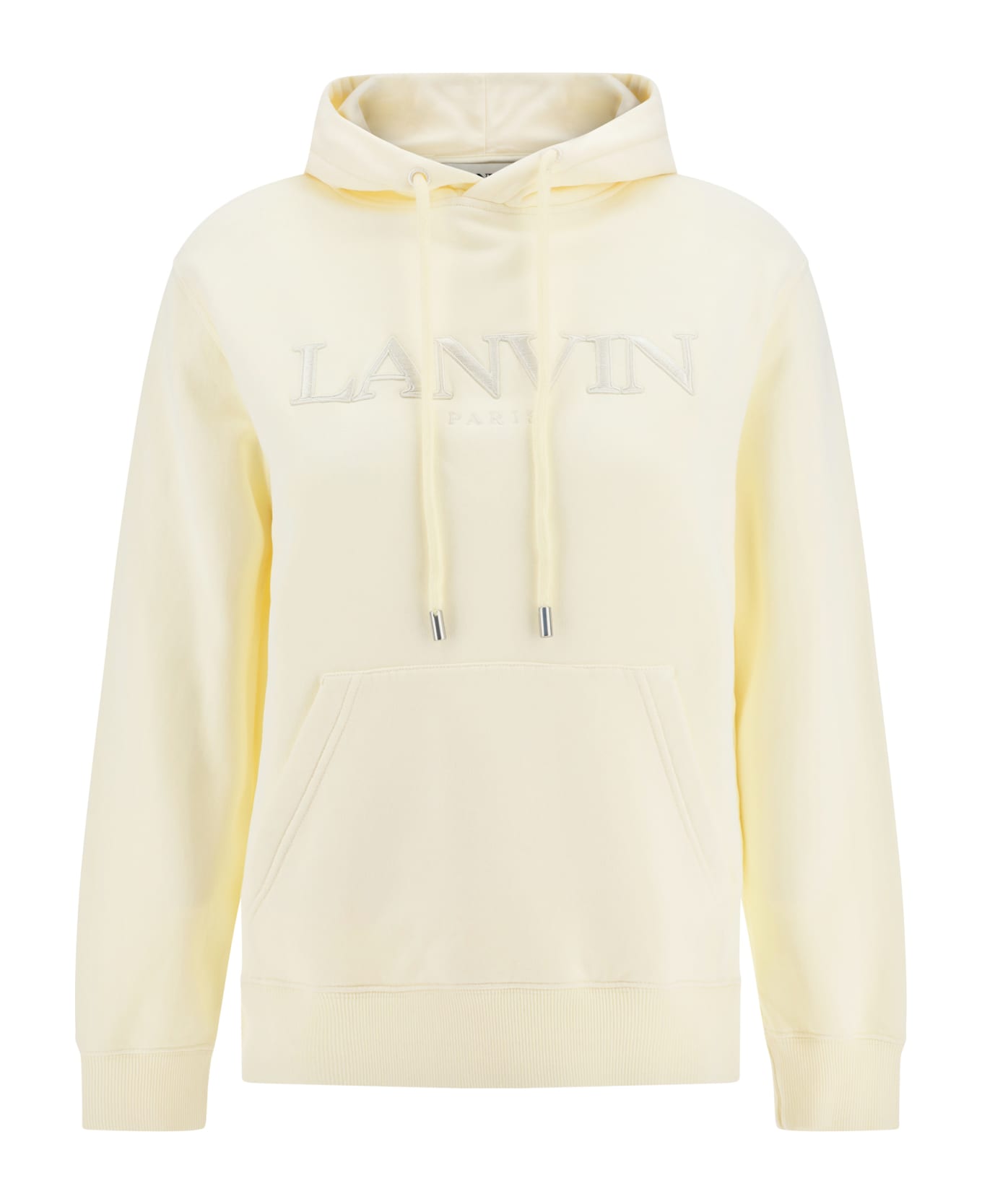 Cotton hoodie by lanvin, adjustable drawstring hood, ribbed cuffs, a ribbed hem, a monochrome pattern, an embroidered iconic brand monogram on the front, a front kangaroo pocket, and a regular fit. Composition: 100% % Cotton
