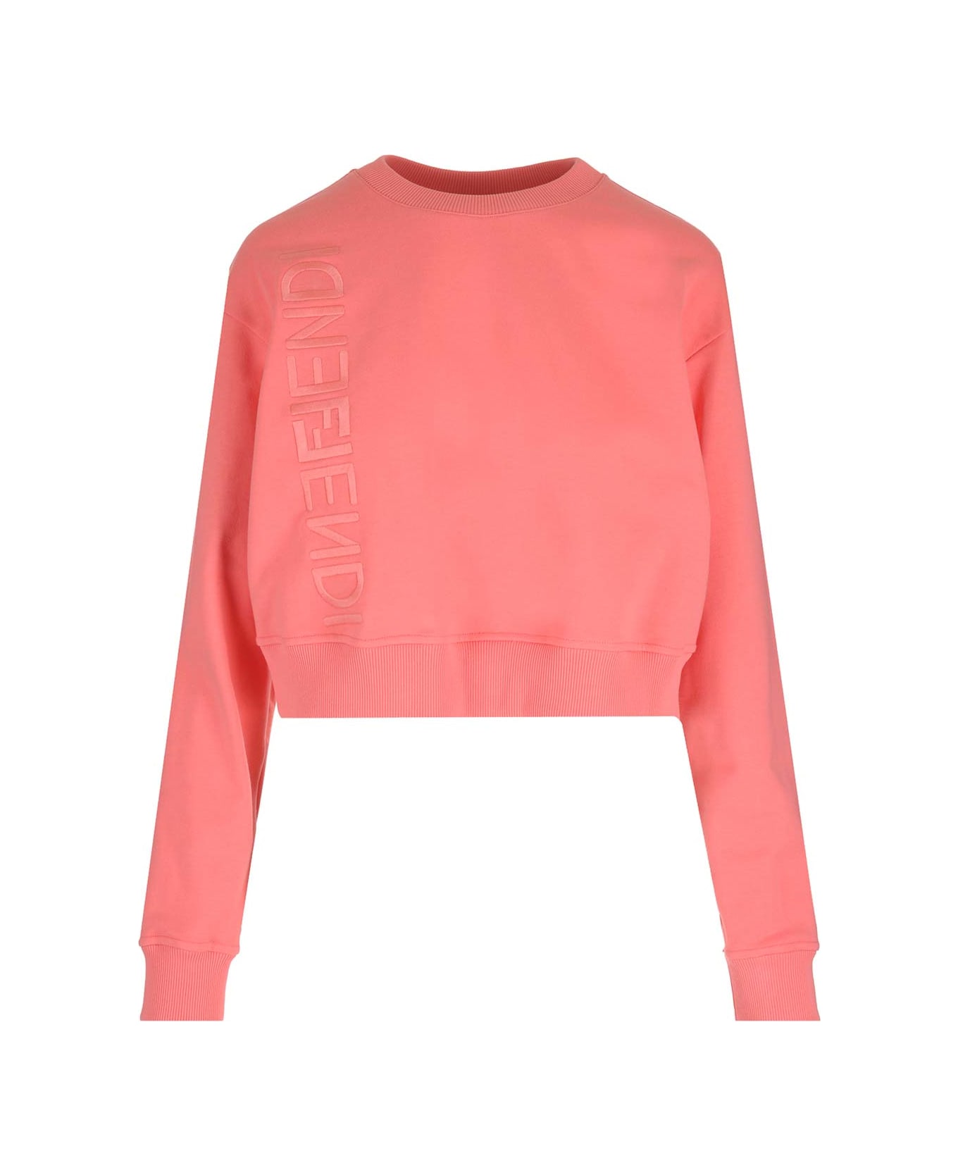 PINK CREWNECK LONG SLEEVE CROP SWEATSHIRT WITH FENDI MIRROR EMBOSSED LOGO Composition: 100%CO+BORDI:97%CO,3%EL