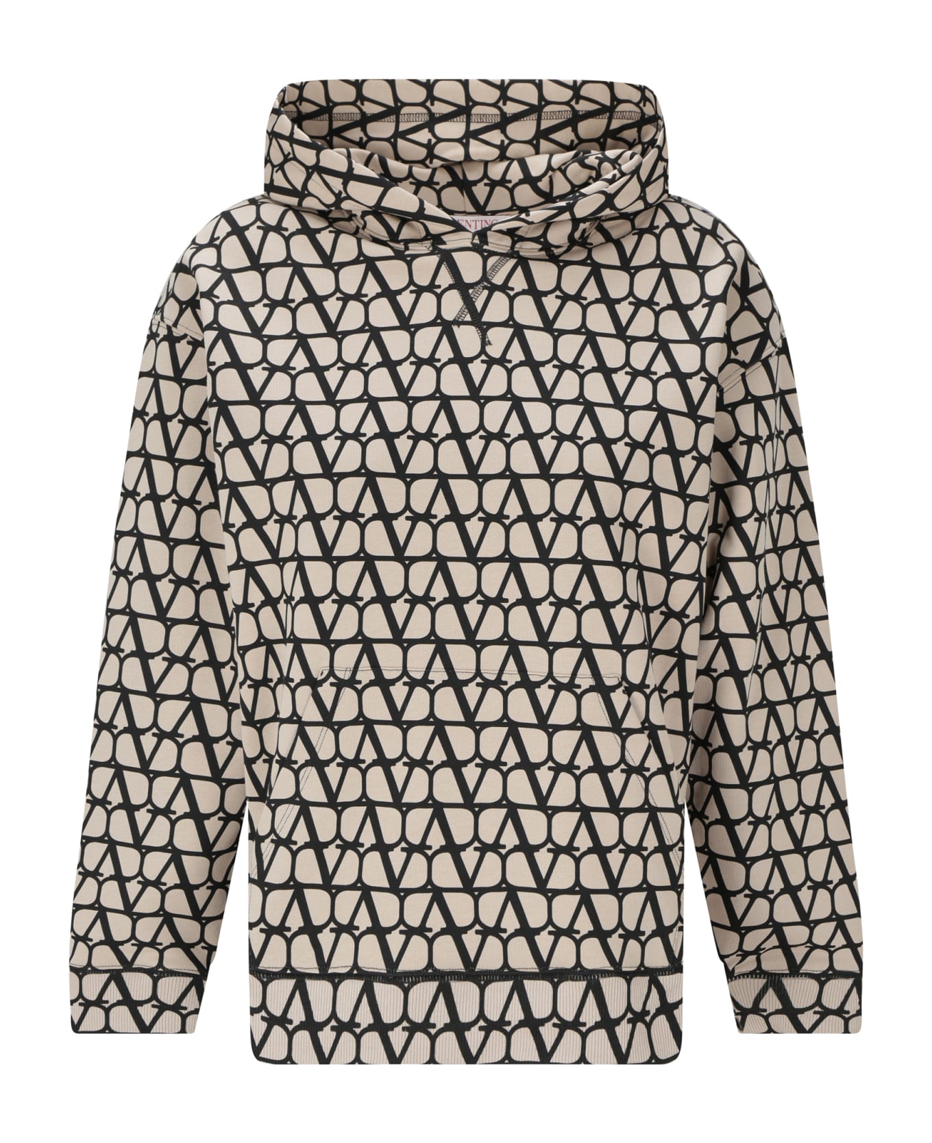 Cotton hooded sweatshirt by valentino pap, ribbed cuffs, ribbed hem, front kangaroo pocket, iconic branded vlogo printed in contrasting all-over repeat on front, regular fit. Composition: 100% % Cotton