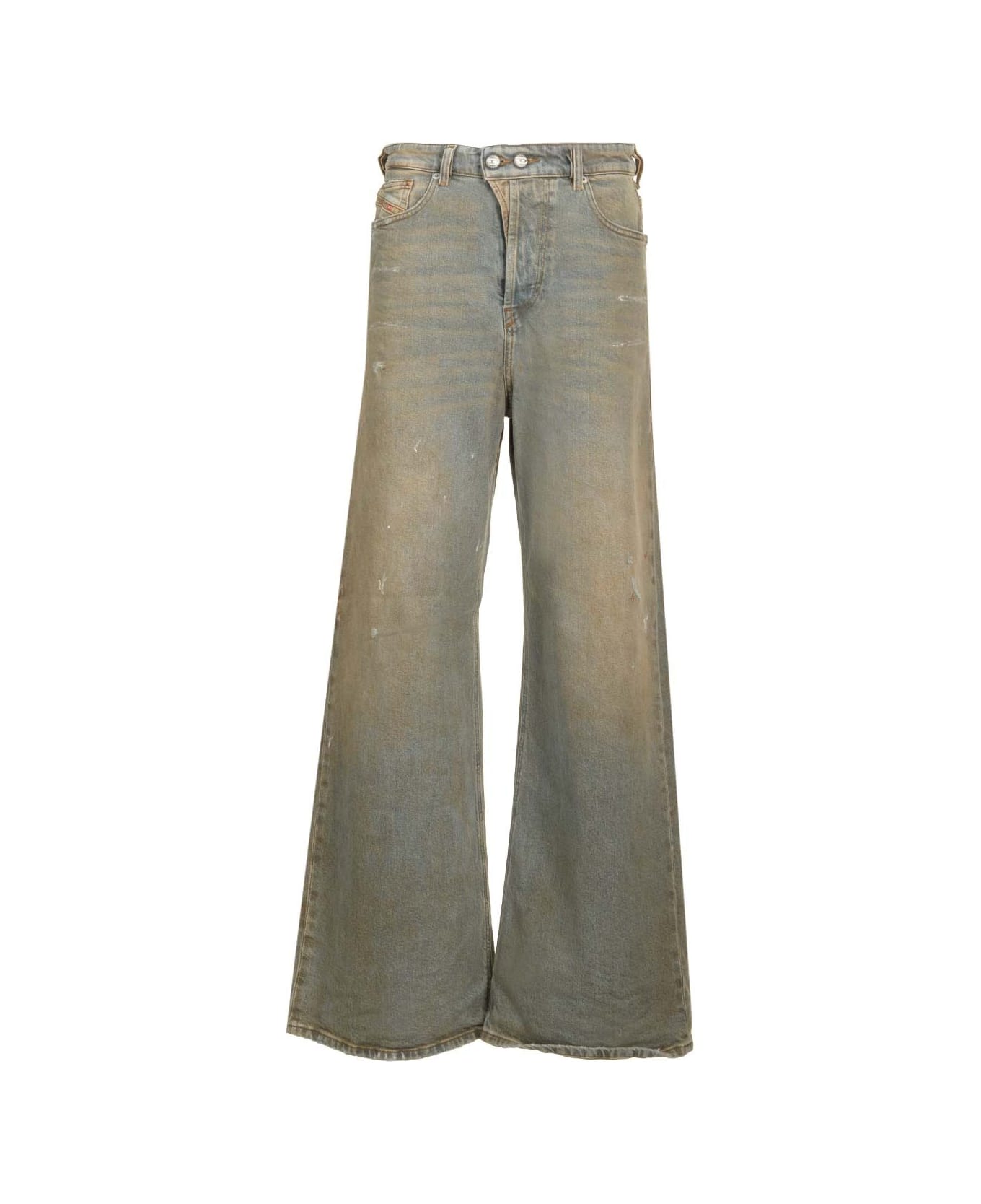 "1996 D-SIRE" loose-fit jeans in sand washed light blue denim from Diesel, relaxed fit with low waist, dropped crotch and extra-long, wide leg. Soft and oversized design, button closure. Composition: 100%CO