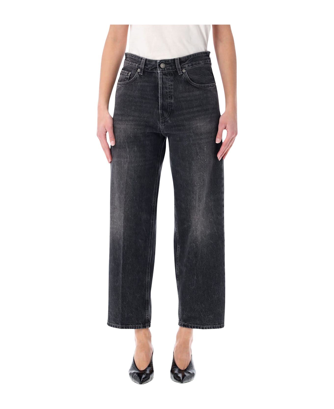 The Betty Jeans By Haikure Are Cut From Authentic Black-wash Denim With A High-rise Waist And Straight Cropped Leg, Creating A Clean, Modern Silhouette. Classic Five-pocket Styling And A Button-front Closure Keep The Look Timeless Yet Versatile, Ideal For Effortless Everyday Outfits. High-rise Waist Straight Cropped Leg Five-pocket Construction Front Button Placket Belt Loops At Waistband Alessandra Is 1,75 M And Wears Size 26