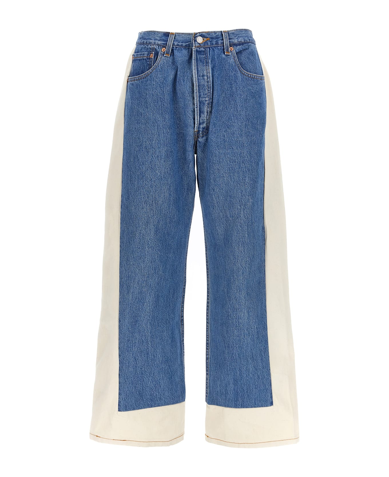 EACH GARMENT IS UNIQUE AND DIFFERENT PLEASE CONTACT US TO KNOW THE COLORS AVAILABLE IN YOUR SIZE. Cotton denim 'Reworked slouch' jeans, side band detail, wide leg pattern, front button closure. This product is made from authentic vintage Levi's 501s collected in the American West. Each piece is unique. Due to the unique characteristics of vintage garments, the garment may have imperfections that are not to be considered defects, the shade of the denim may vary slightly.