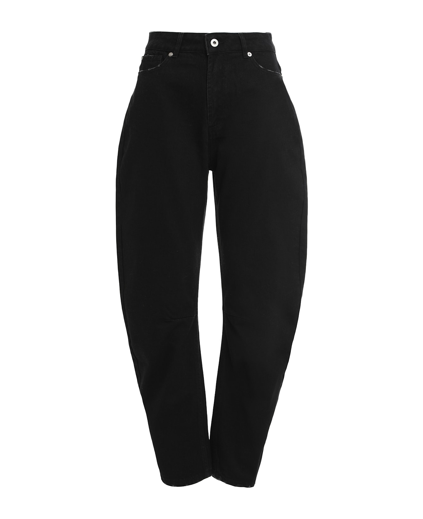 Black jeans with five pockets featuring a modern and versatile fit. tag with logo on the back and localized wear.