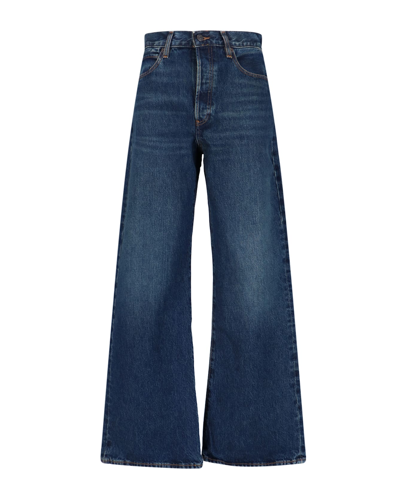 Frame wide blue cotton denim jeans, high waist, button closure, belt loops, five pockets design, wide leg. Composition: 100% Cotton