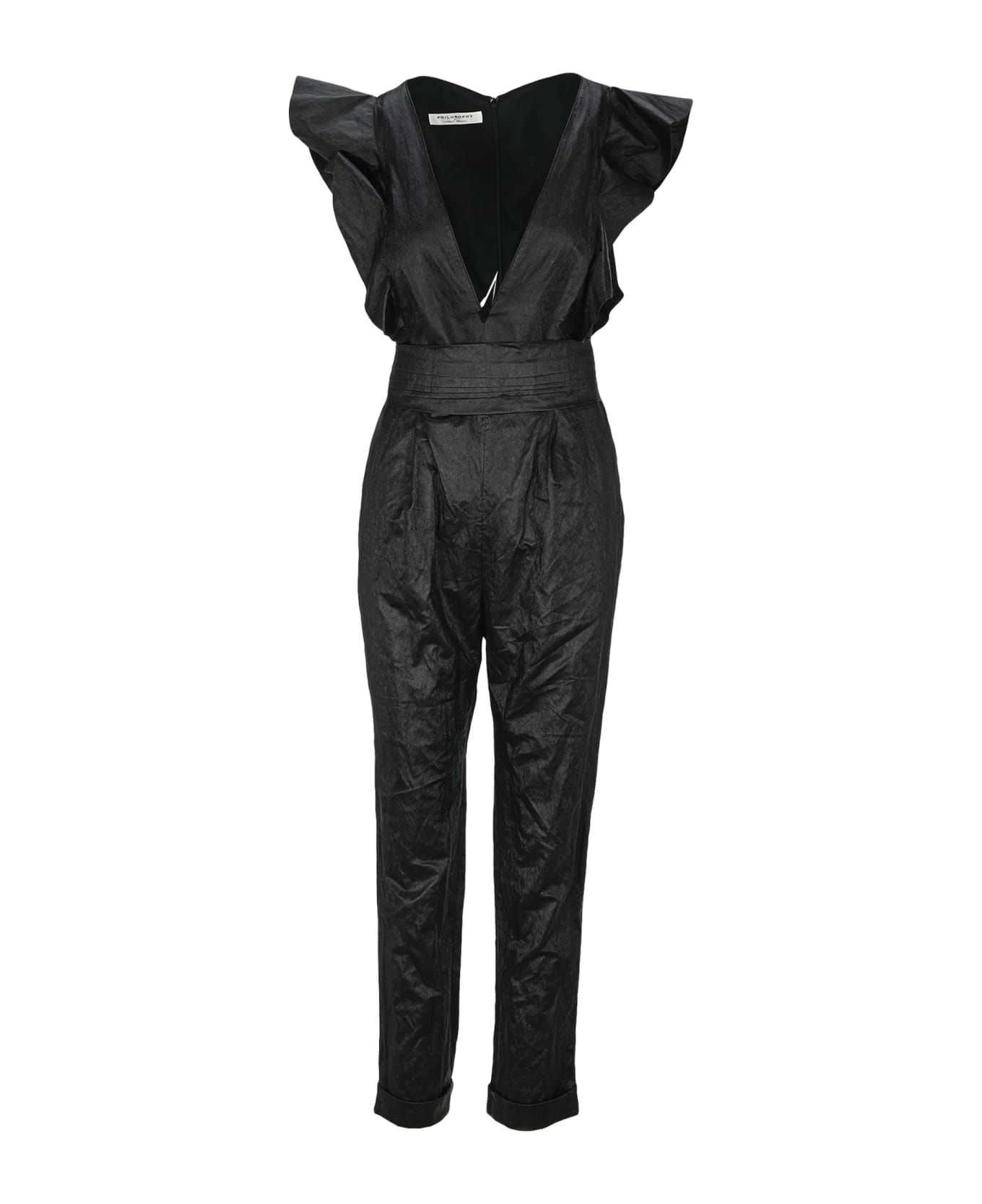 Black Ruffled Plunge Jumpsuit By Philosophy. Featuring: - Deep V-neck; - Sleeveless Design; - Ruffled Details; - Belted Waist; - Concealed Rear Zip Fastening; - Regular Length; - Turn-up Hem.