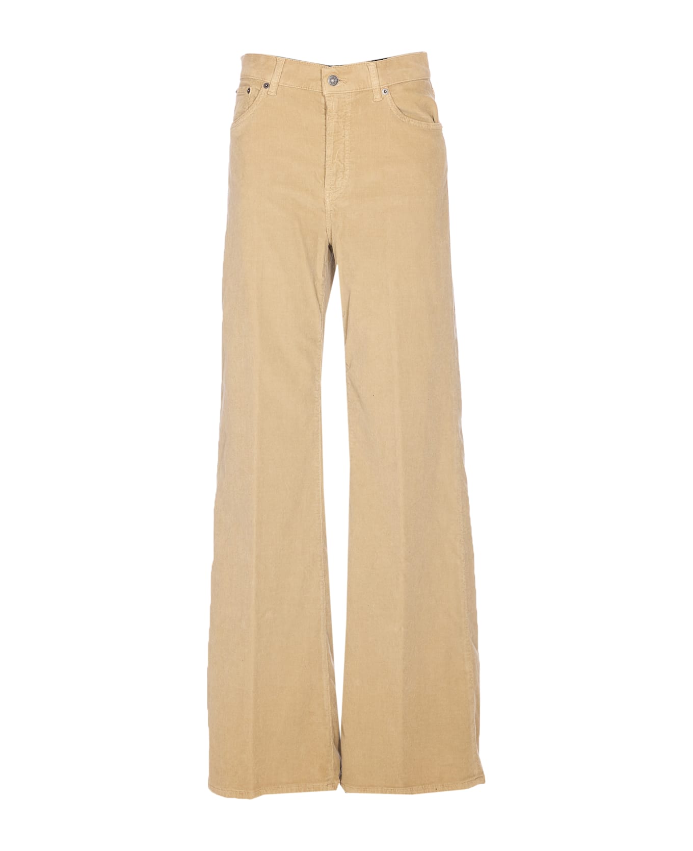 Dondup beige Amber jeans with frontal zip and button closure, 5 pockets, patch logo on the back, wide leg fit, velvet effect Composition: 66% Cotton, 32% Lyocell, 2% Elastane