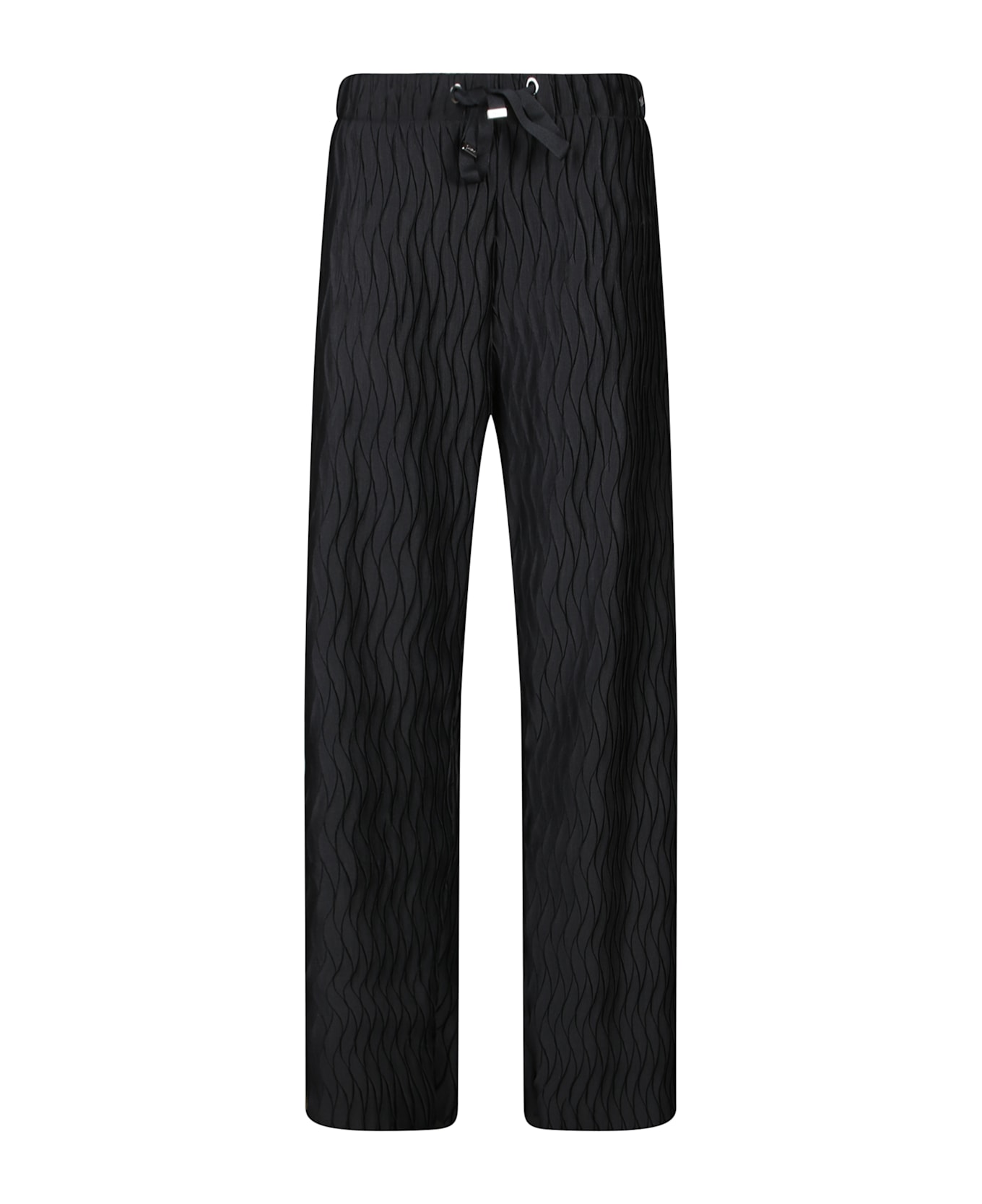 Herno's black embossed jersey pants blend comfort with elegance. The relaxed cut and elastic waistband ensure a comfortable fit, perfect for transitioning from office to leisure. Composition: 100% Polyester