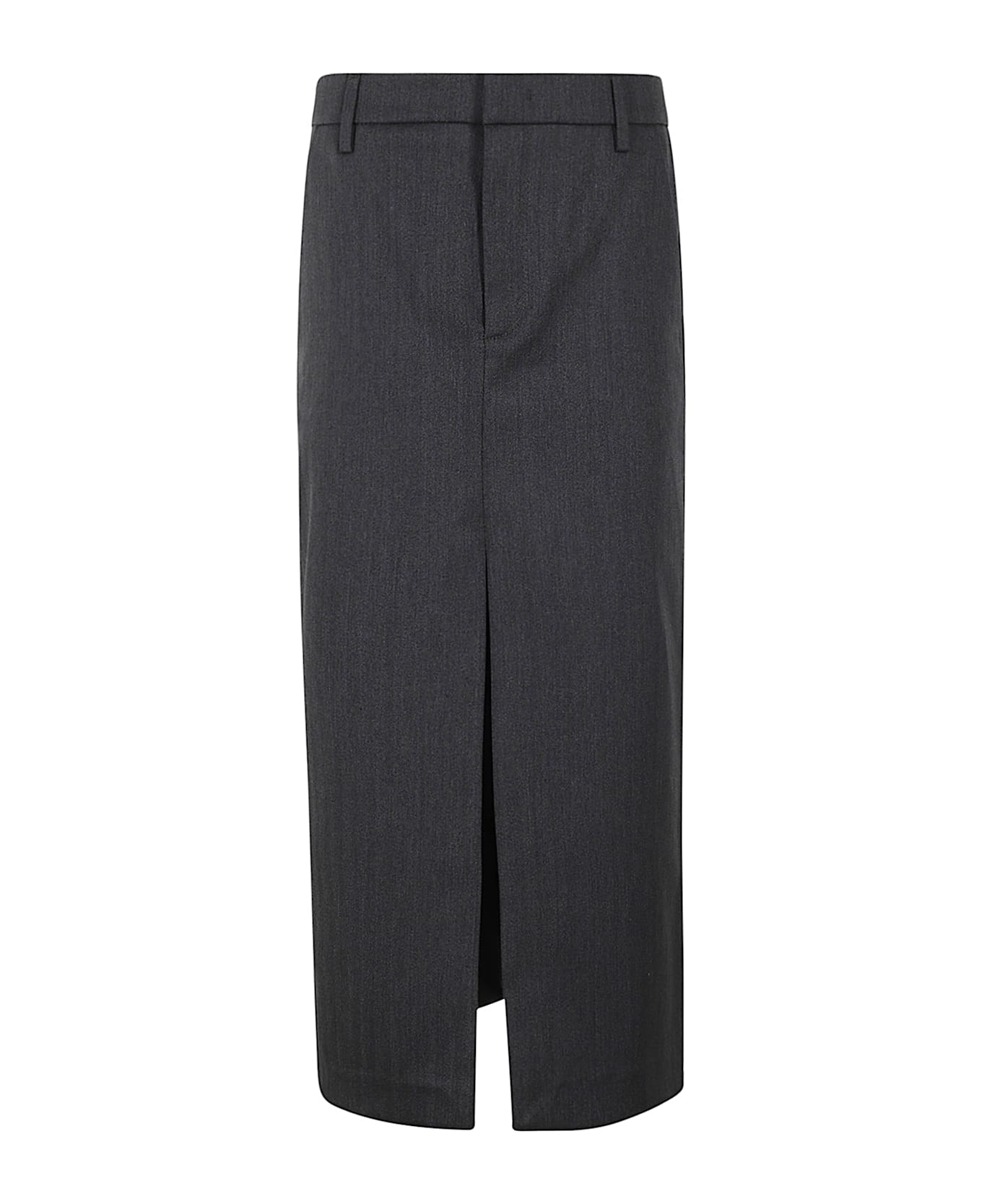 Skirt - Dondup - anthracite color - herringbone pattern - zipper and hook closure - belt loops at waist - sheath model - slanted side pockets - back welt pockets - front and back slit - knee length