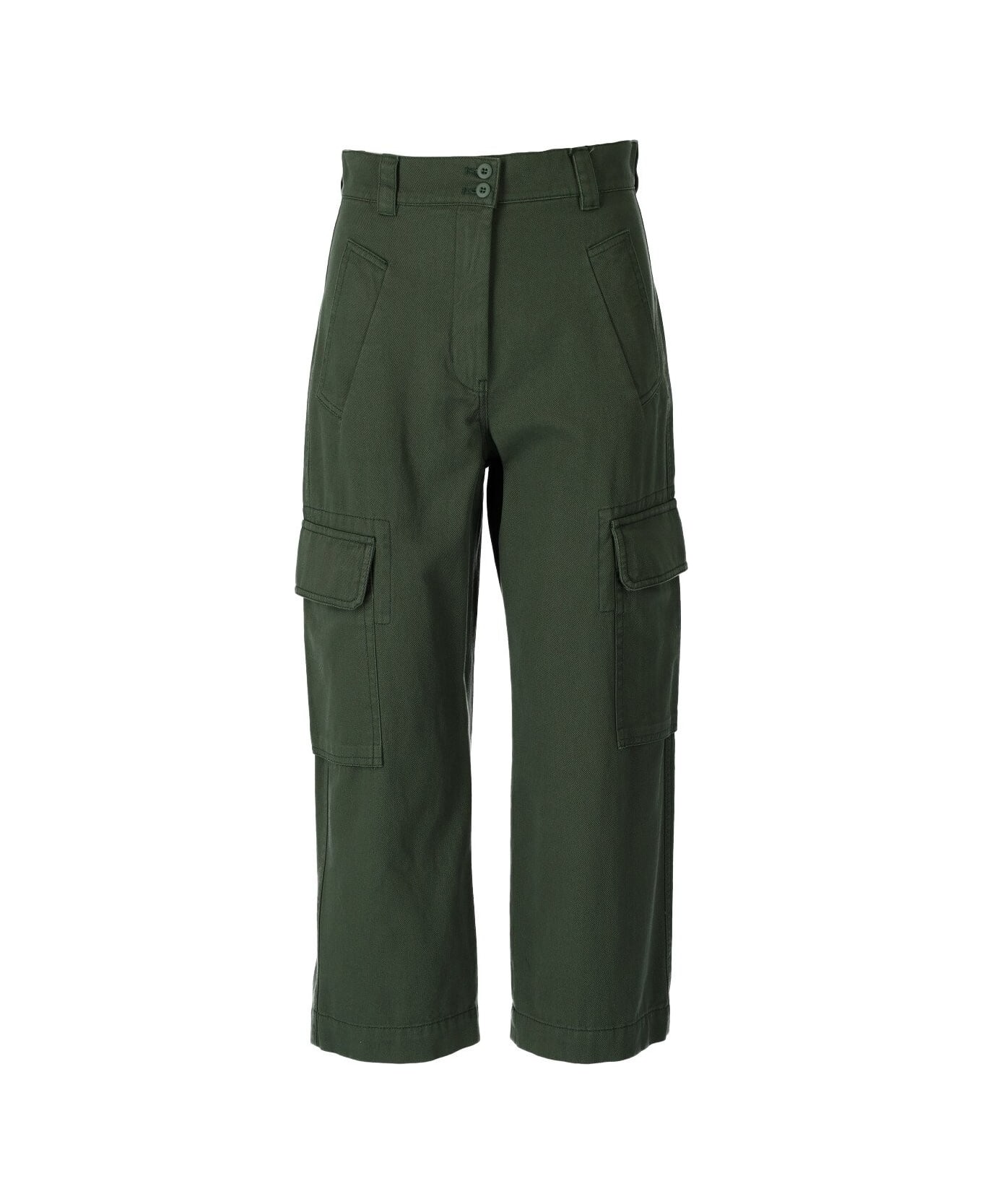 Pineta trousers by Max Mara Weekend made of military green textured cotton, featuring a cargo pockets on the front and patch pockets on the back. Belt loops, zip and button closure. Straight cut, relaxed fit.