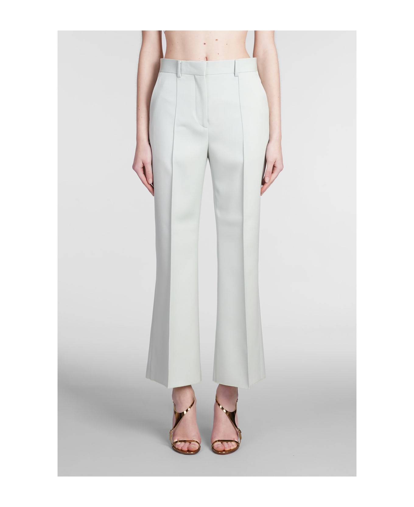Pants in green wool, concealed front fastening, waist belt loops, crop cut, pockets, 100% wool, Made in Italy, Model is 180 cm and wears 38