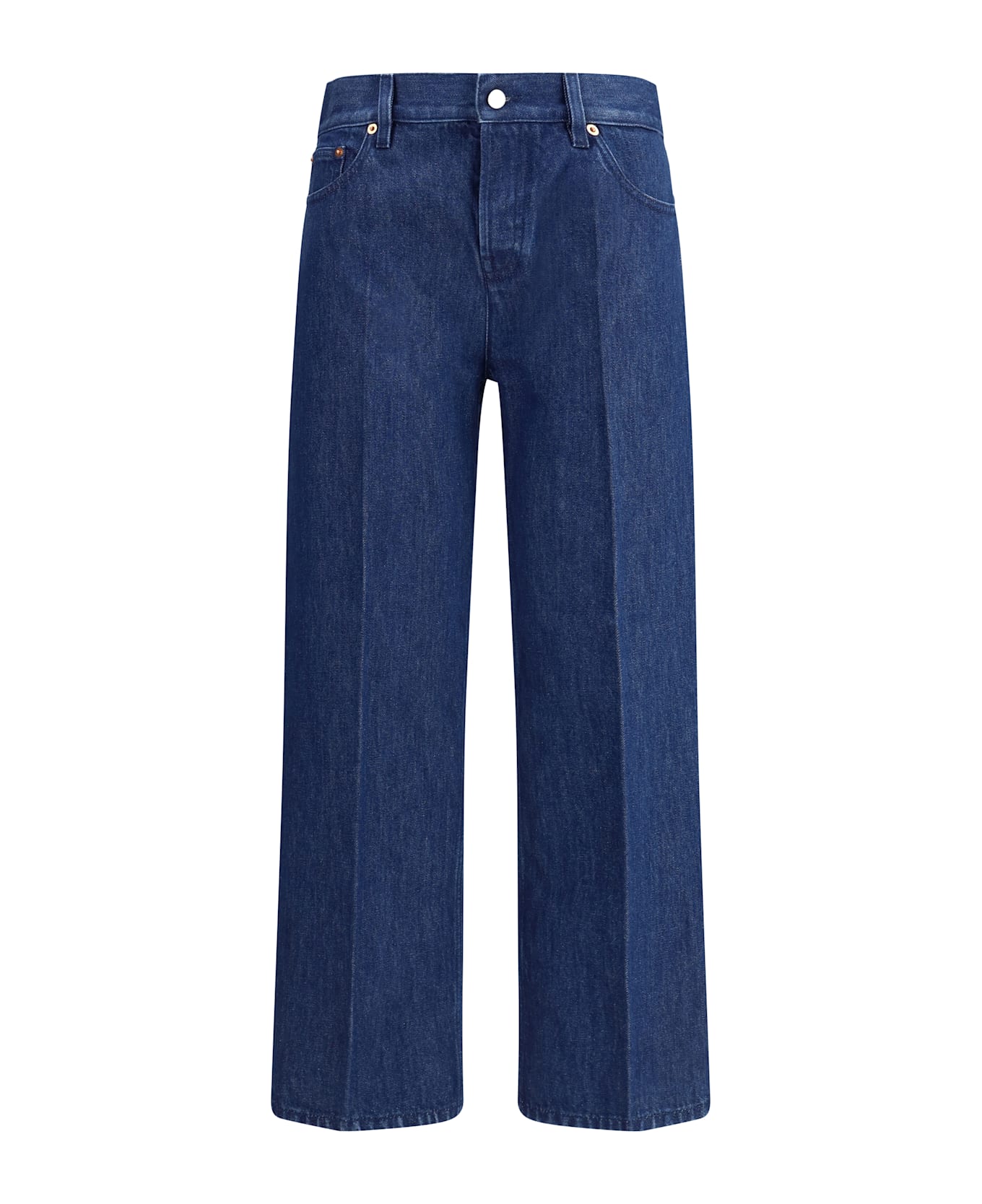 Gucci's straight jeans combine a classic and modern design, perfect for those seeking a sophisticated yet casual style. the five-pocket style offers functionality and a touch of tradition, while the front button closure adds a distinctive detail and a nod to a vintage aesthetic. belt loops on the waist allow you to personalize the look with a belt, completing the outfit. the patch with the brand's signature applied on the back is a touch of luxury and recognition, which gives the jeans an exclusive look.