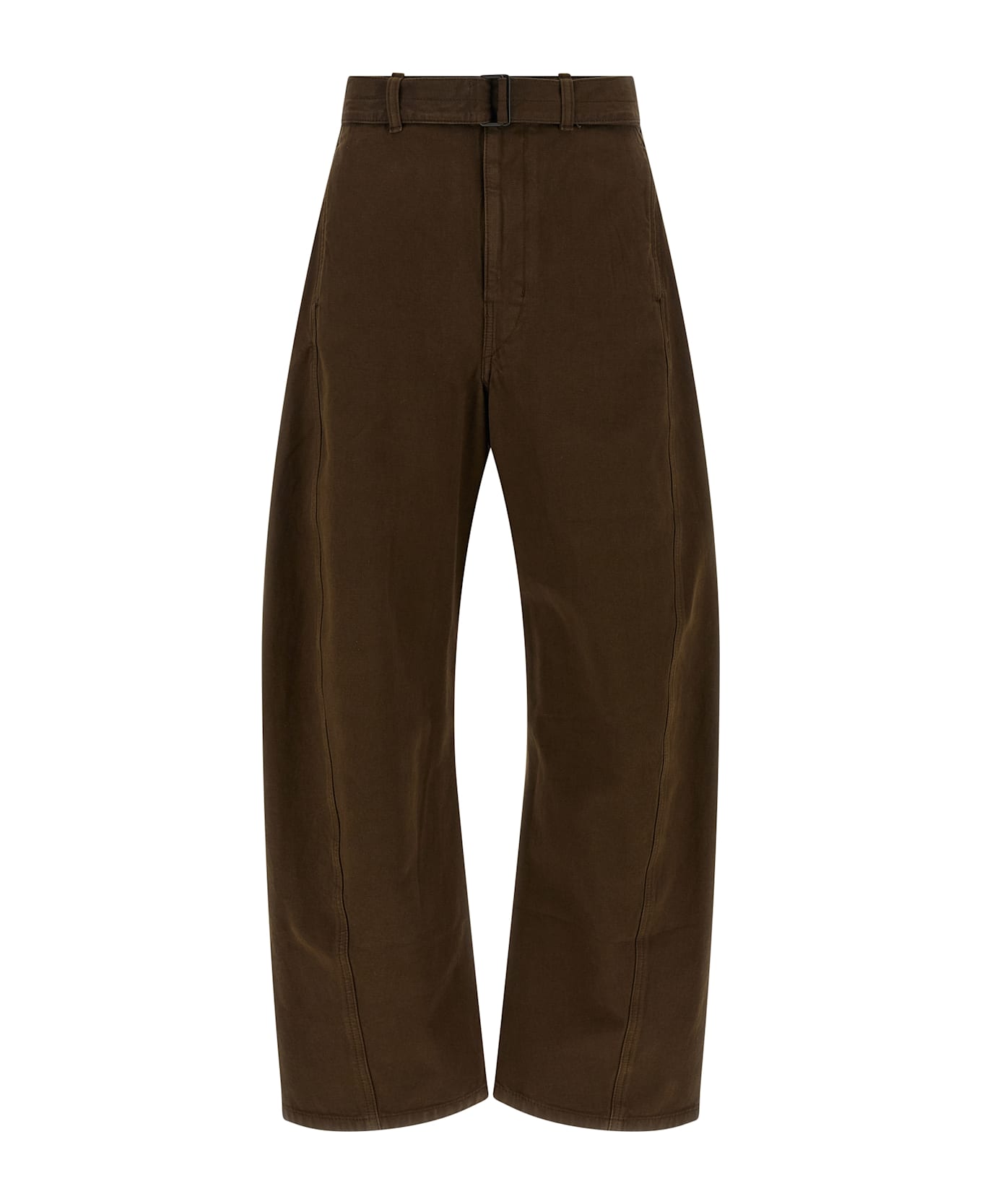 'Twisted Belted' pants in heavy broken twill, curved leg, mid waist, zip hook and front button closure, pockets, removable belt. Composition: 100% cotton