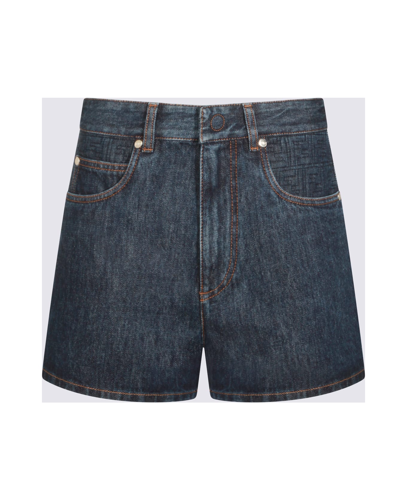 Blueberry cotton shorts from Fendi featuring high waist, belt loops, frontal zip and button fastening and back logo. Composition: 100% Cotton