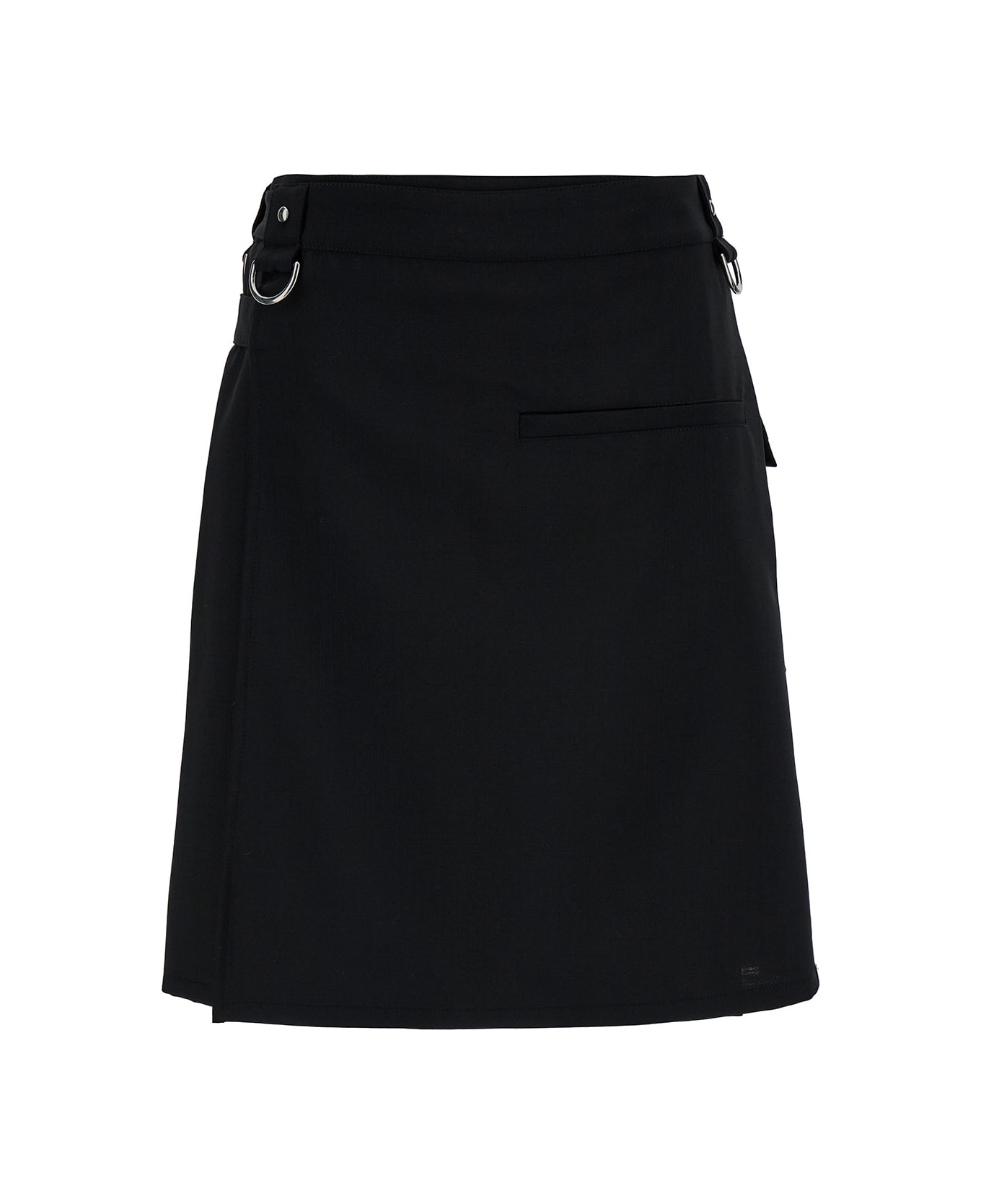 Kilt skirt High-waisted Studs embellishment Logo patch Wrap closure Multiple pockets Pleated detail Silver-colored metalware Black Mohair and wool blend Regular fit