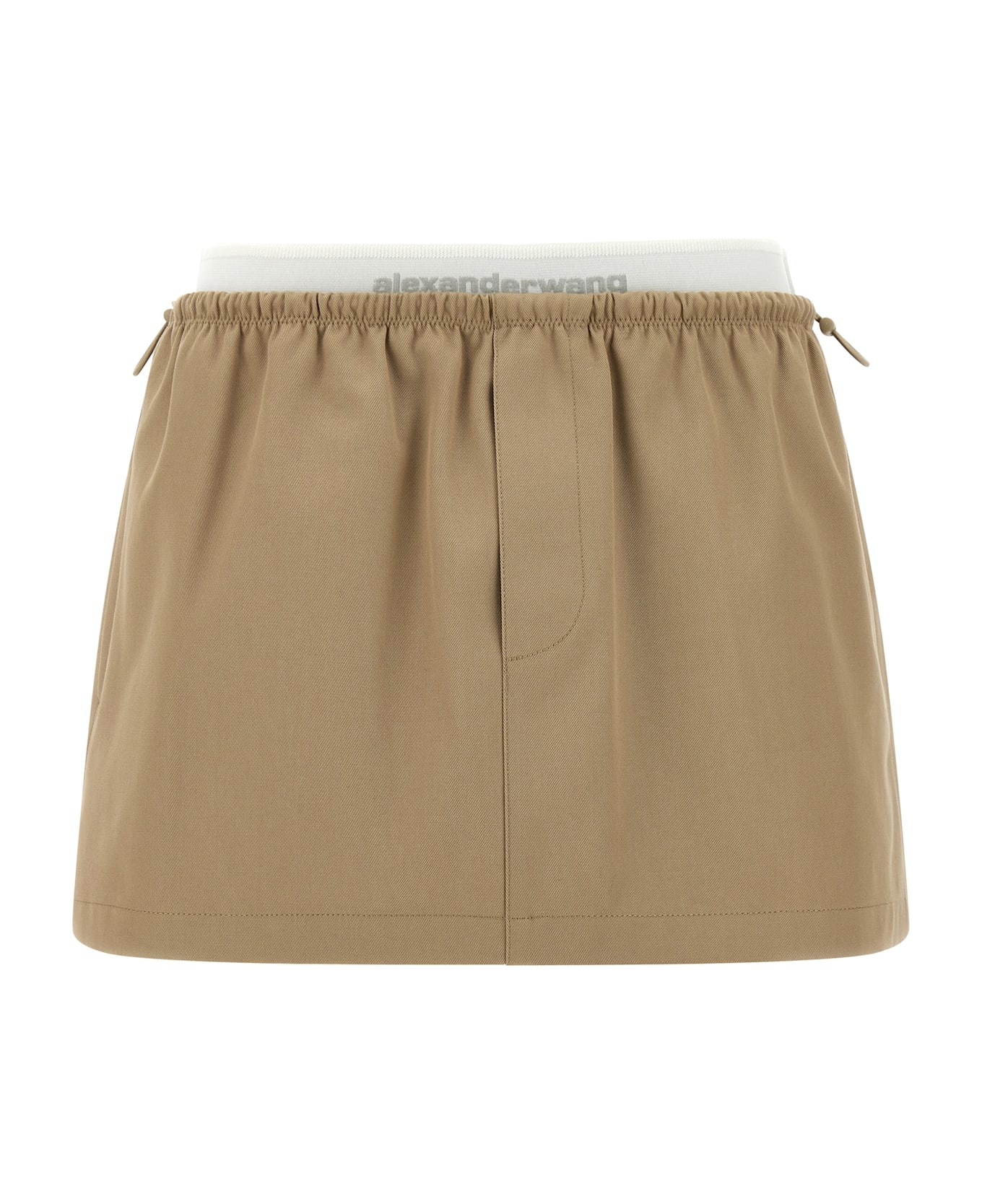 Cotton mini skirt, double layer waist with contrast logo elastic band insert, medium waist, trompe l'oeil flap, pockets, drawstring at the waist, unlined. Composition: 100% cotton