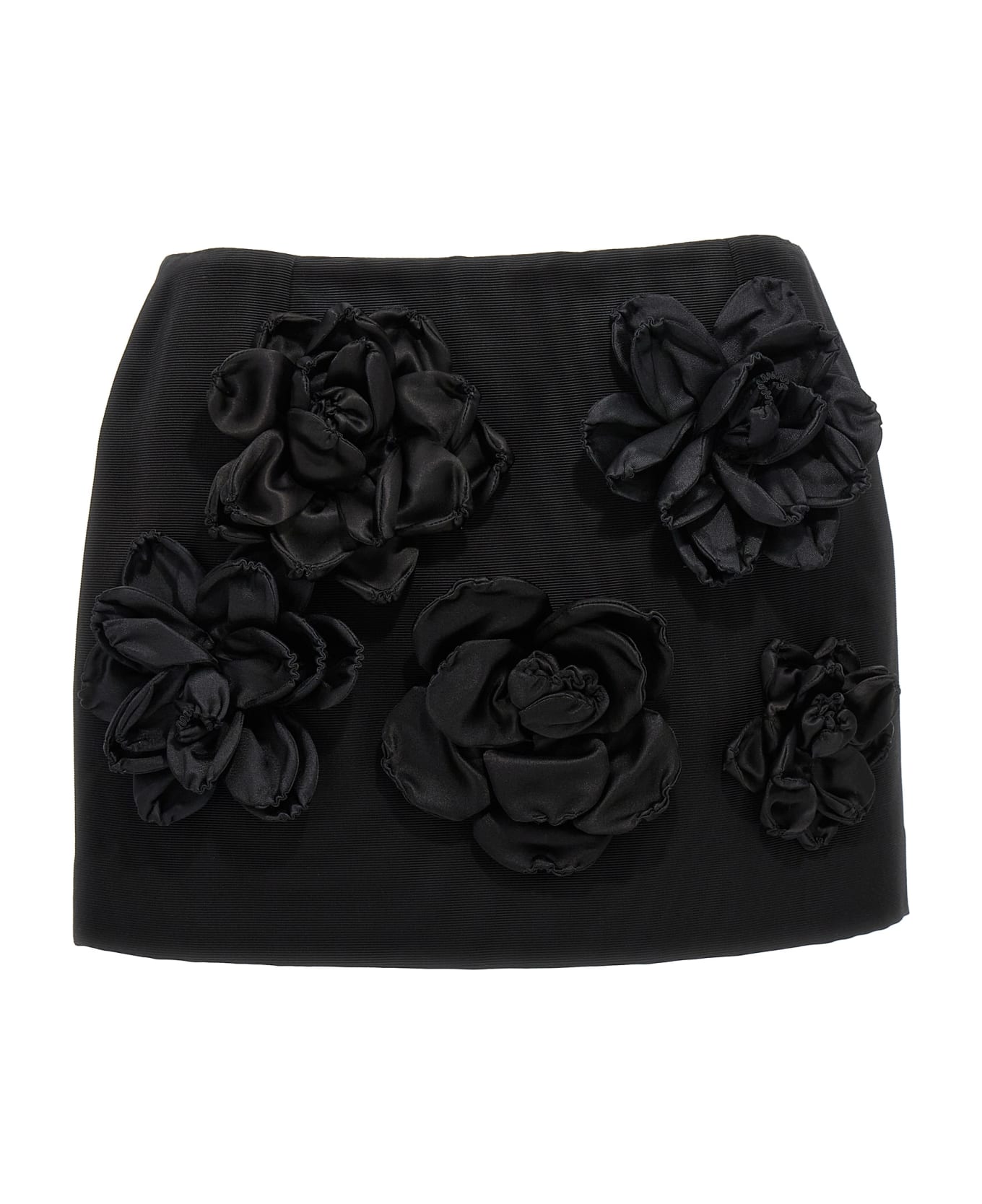 Ottoman fabric skirt with floral embroidery, stretch silk satin lining, and back zip closure. Composition: 71% cotton 29% viscose