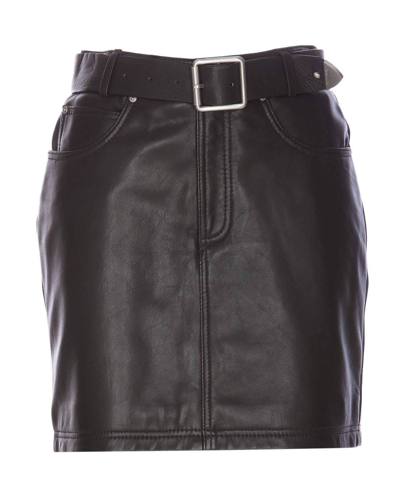Pinko leather black Grenada skirt, frontal zip and belt closure, lateral pockets, back pockets