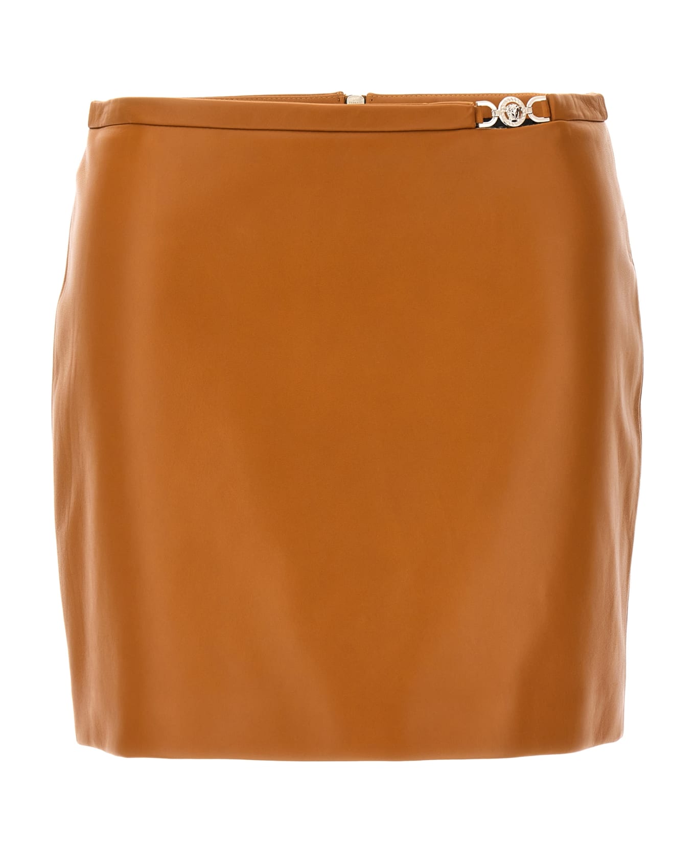 Leather miniskirt with metal logo detail at the waist. Composition: 100% aos