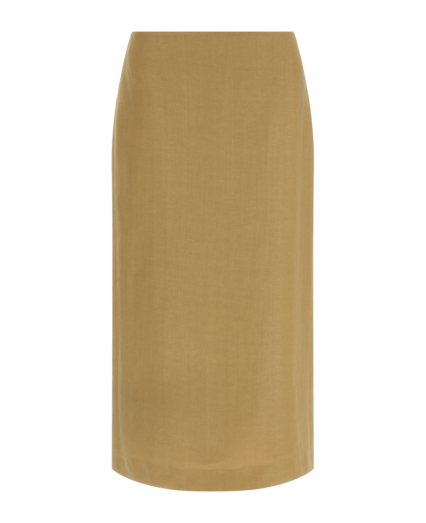 Midi skirt MxsVeranda diagonally in pure linen with matt finish, longuette model, tailored dot at the waist, zip closure and wide back split. Composition: 100% linen