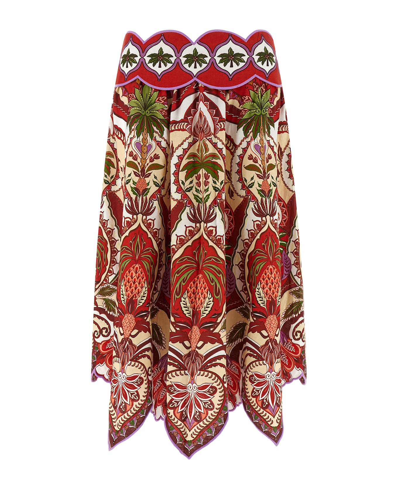'Odara' midi skirt in Euroflax and Ecovero Lenzing , flared silhouette with scalloped edges, back zip closure, asymmetrical hem. SUSTAINABLE: Product made from sustainable materials.