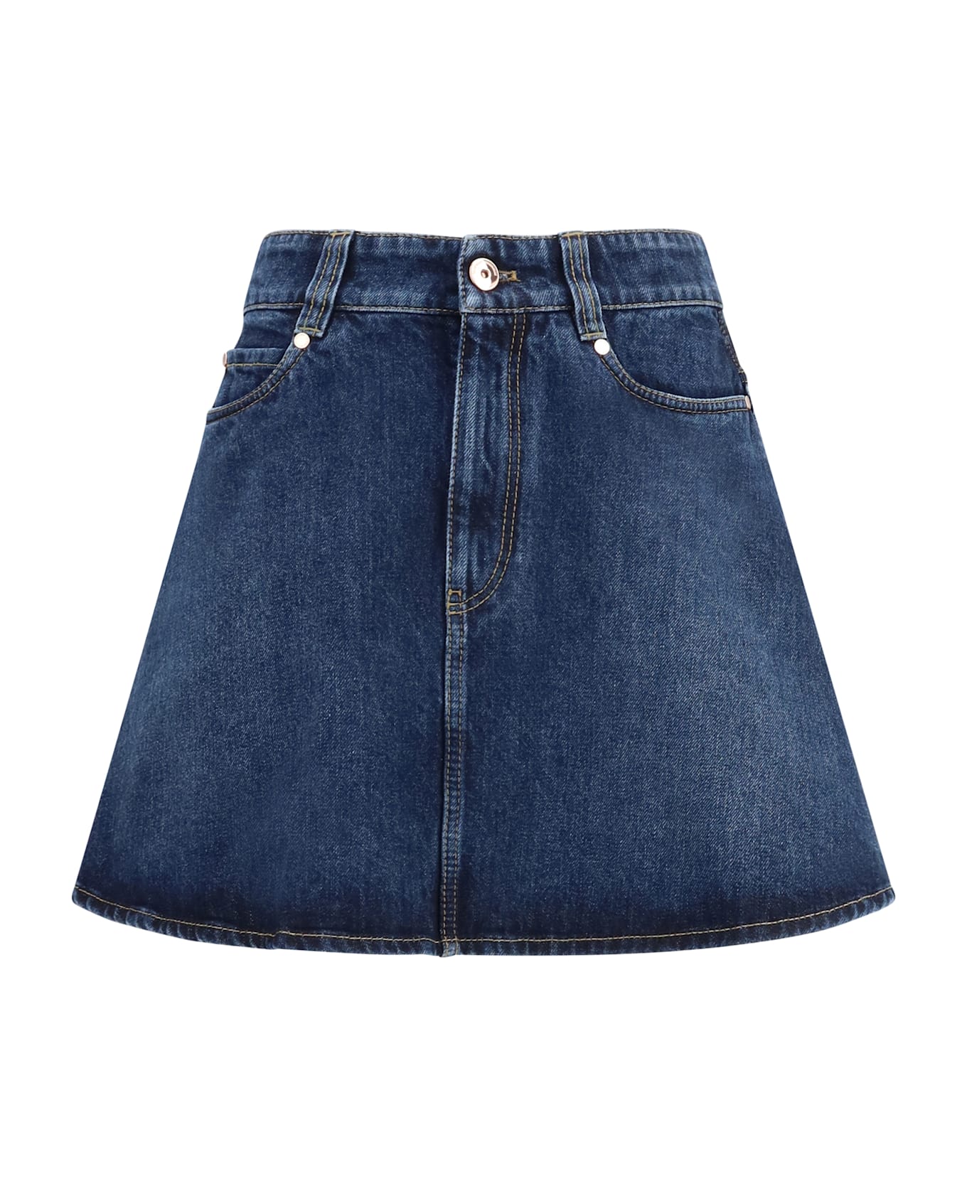 The short denim skirt by brunello cucinelli is a casual piece with a contemporary appeal, perfect for elevating everyday looks with a refined touch. featuring a front button and zip closure, it comes with a classic five-pocket design and belt loops at the waist, combining practicality with essential style.