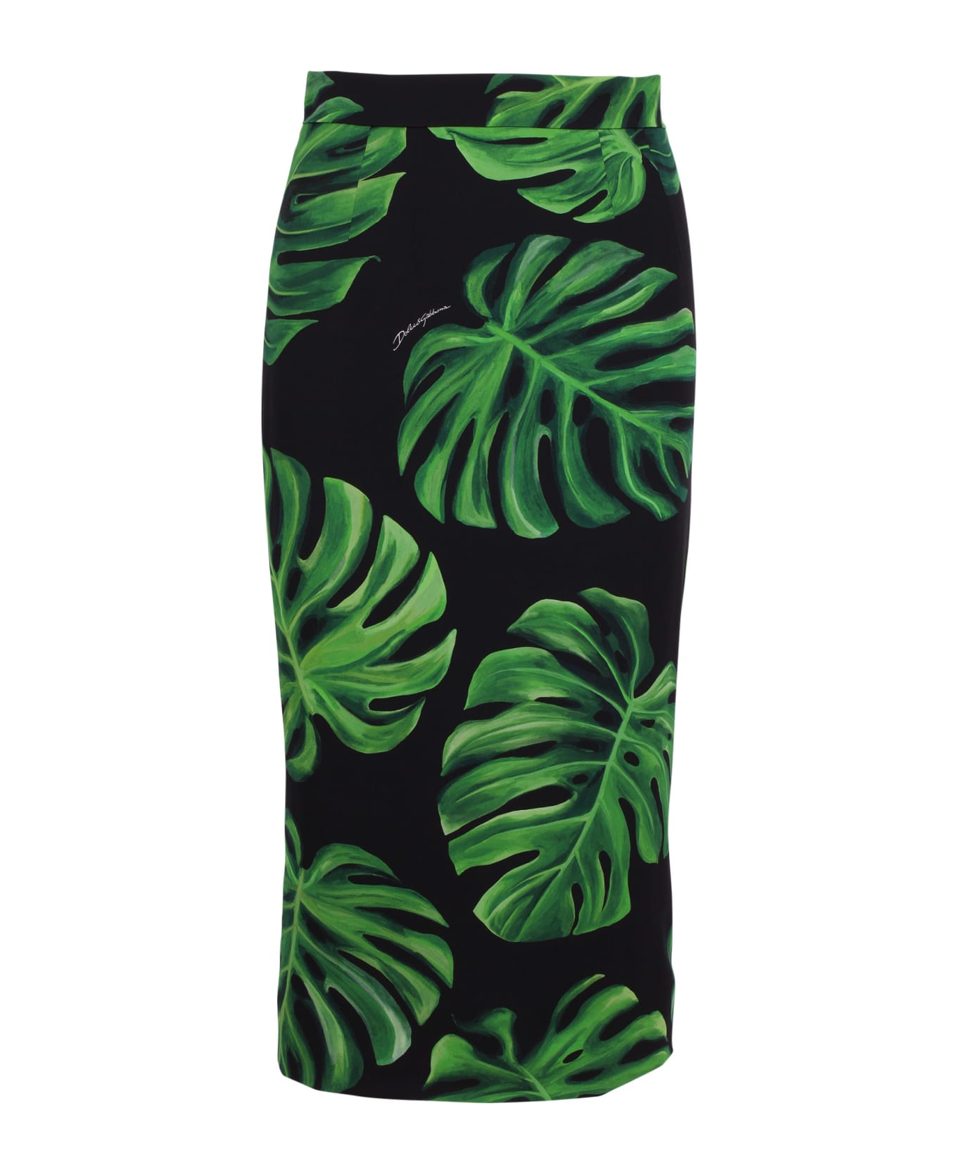 Black pencil skirt with leaves print by Dolce & Gabbana Composition: 89% Silk -, 11% Elastane