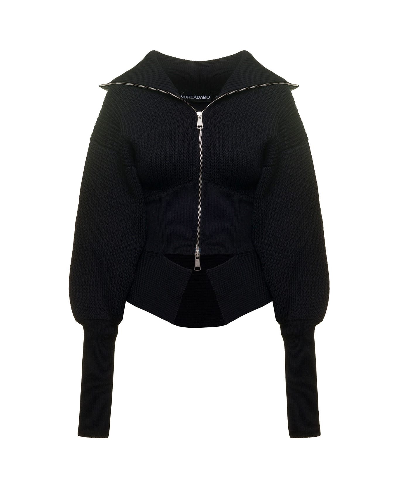 Black Sweater With Zip In Ribbed Wool Woman Andrea Adamo