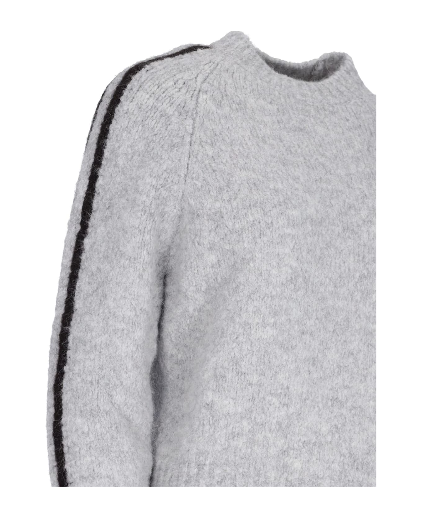 Paloma Wool 'Grand Slam II' intarsia sweater in grey wool and alpaca blend, crew neck, black band intarsia on the sides, ribbed trims, straight hem.