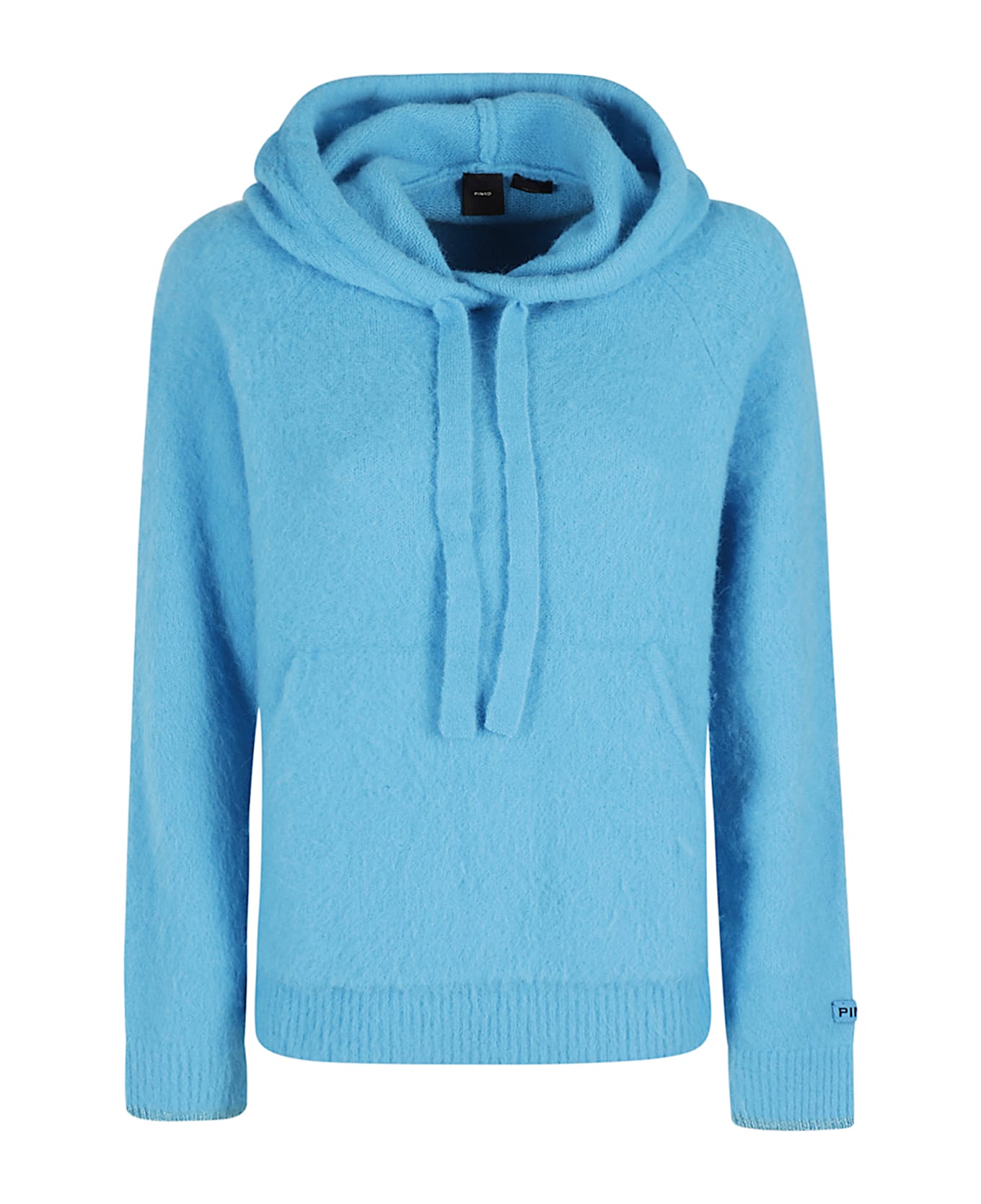 Bobtail Soft Brush Sweater - Pinko - Light blue color - Drawstring hood - Kangaroo pocket - Contrasting glitter cuffs - Soft to the touch