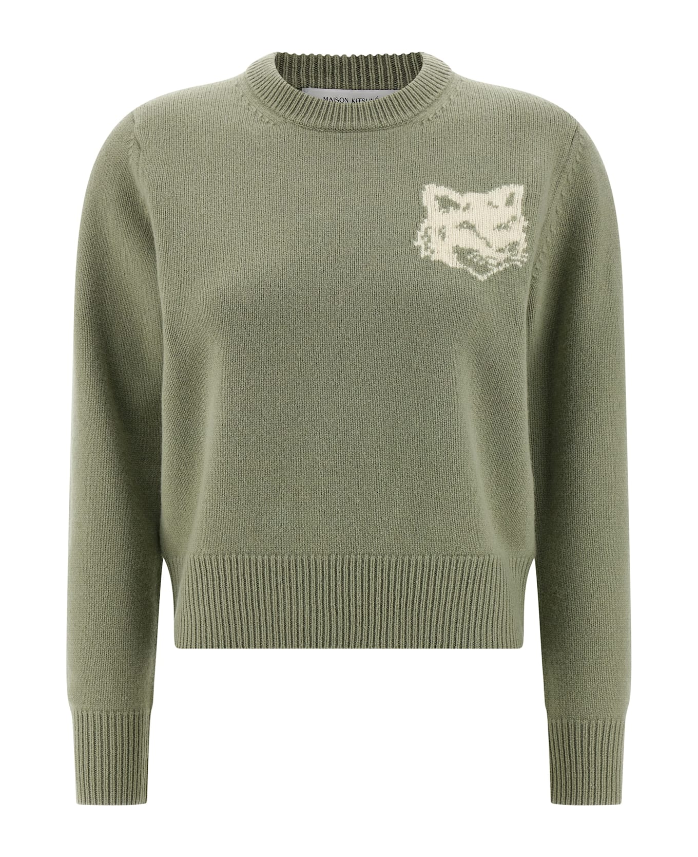 Merino wool sweater with contrast 'Fox Head' intarsia, crewneck, long cuffed sleeves.