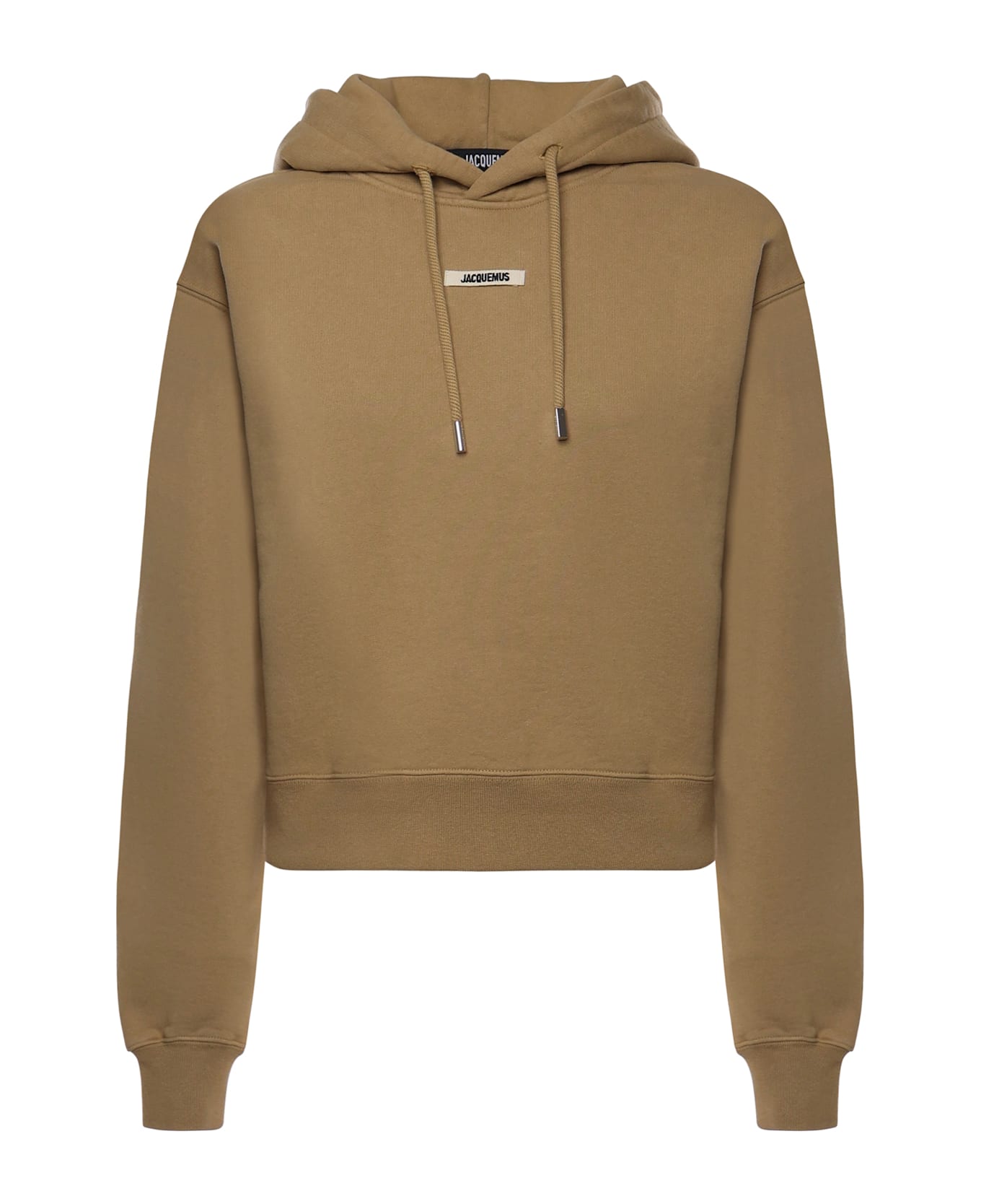 - Made of cotton fleece - Drawstring hood - Elasticated cuffs and hem - Embroidered logo on the chest - Size shown is XS - Color: Dark Beige