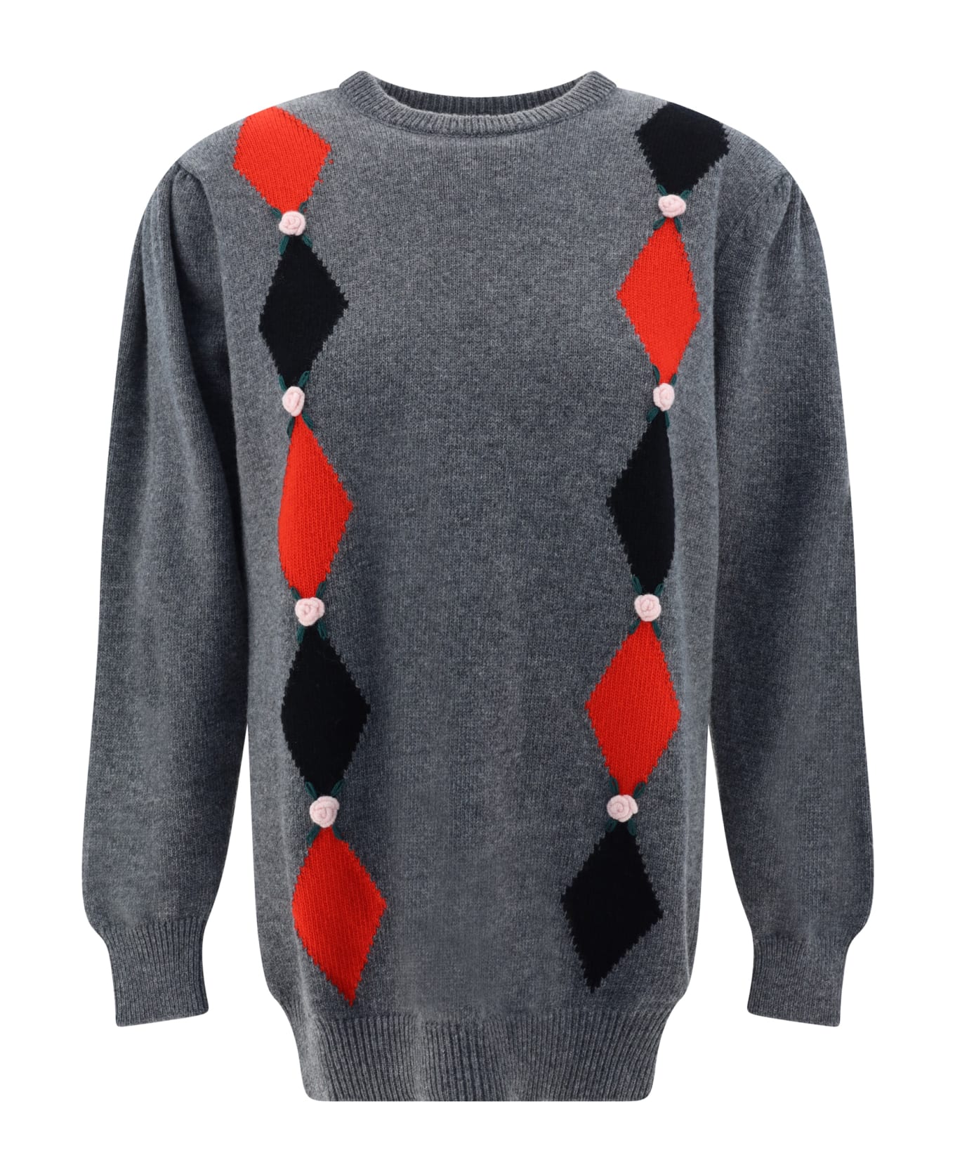 Wool sweater by alessandra rich, ribbed crew neck, contrasting two-tone diamonds on front, ribbed cuffs, monochrome pattern, ribbed hem, regular fit. Composition: 100% % Wool