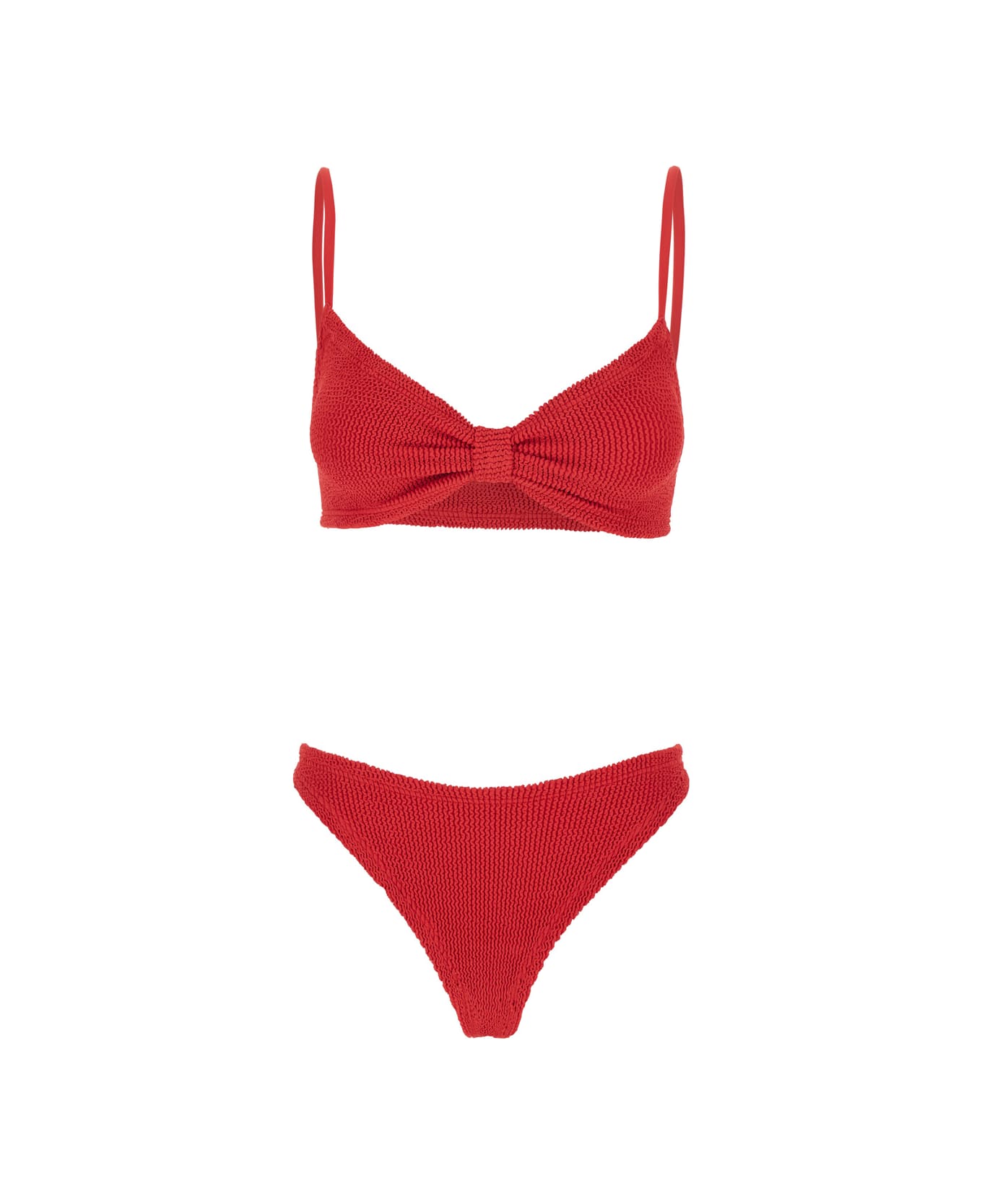 Bikini Red Fixed thin straps Knot on the front High-cut bottoms stretch Tech fabric Regular fit