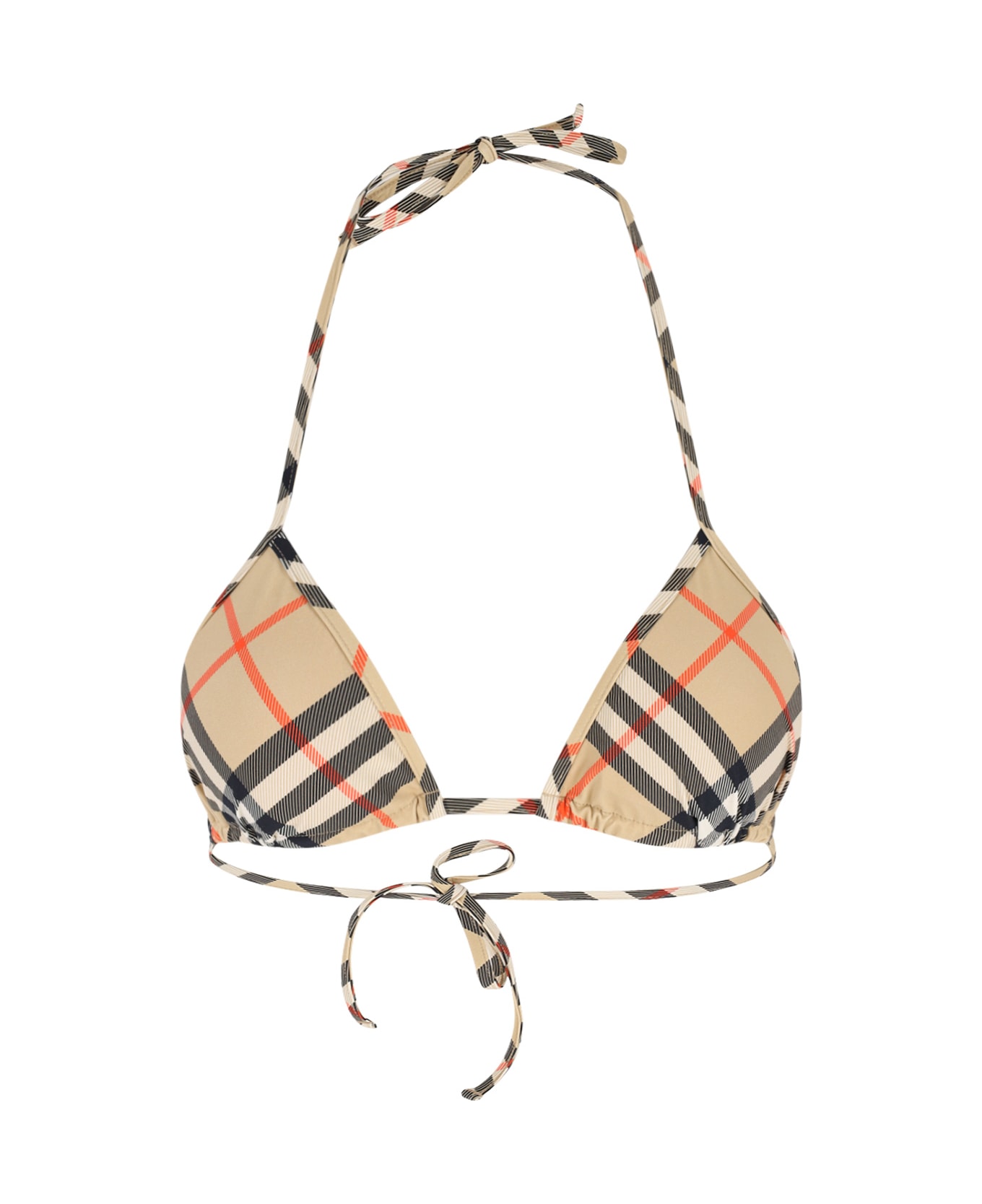 Burberry check swimsuit top in beige stretch fabric with all-over check pattern, top ribbon closure and back. Composition: 73% Polyamide, 27% Elastane