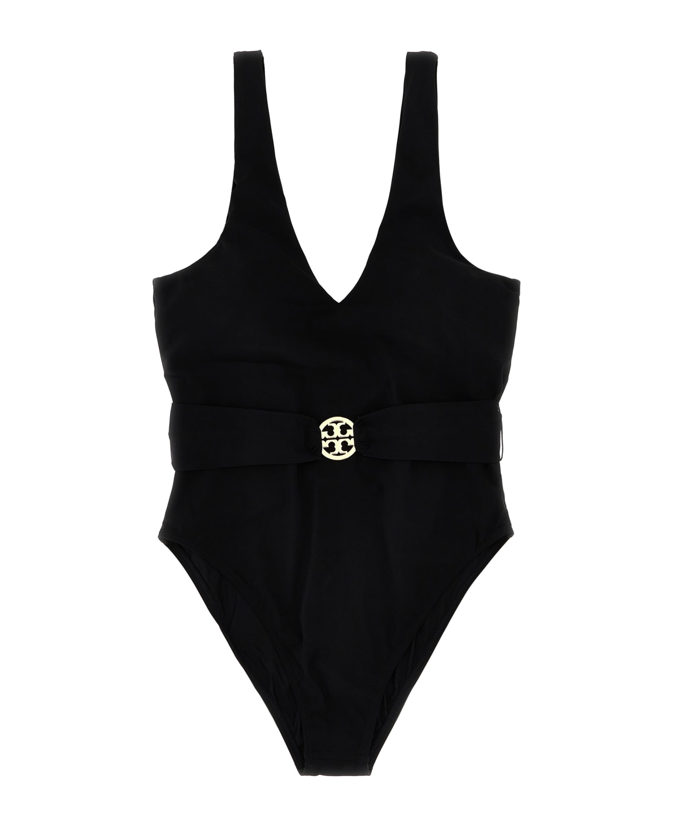 'Miller plunge' one-piece swimsuit in stretch fabric with metal logo.