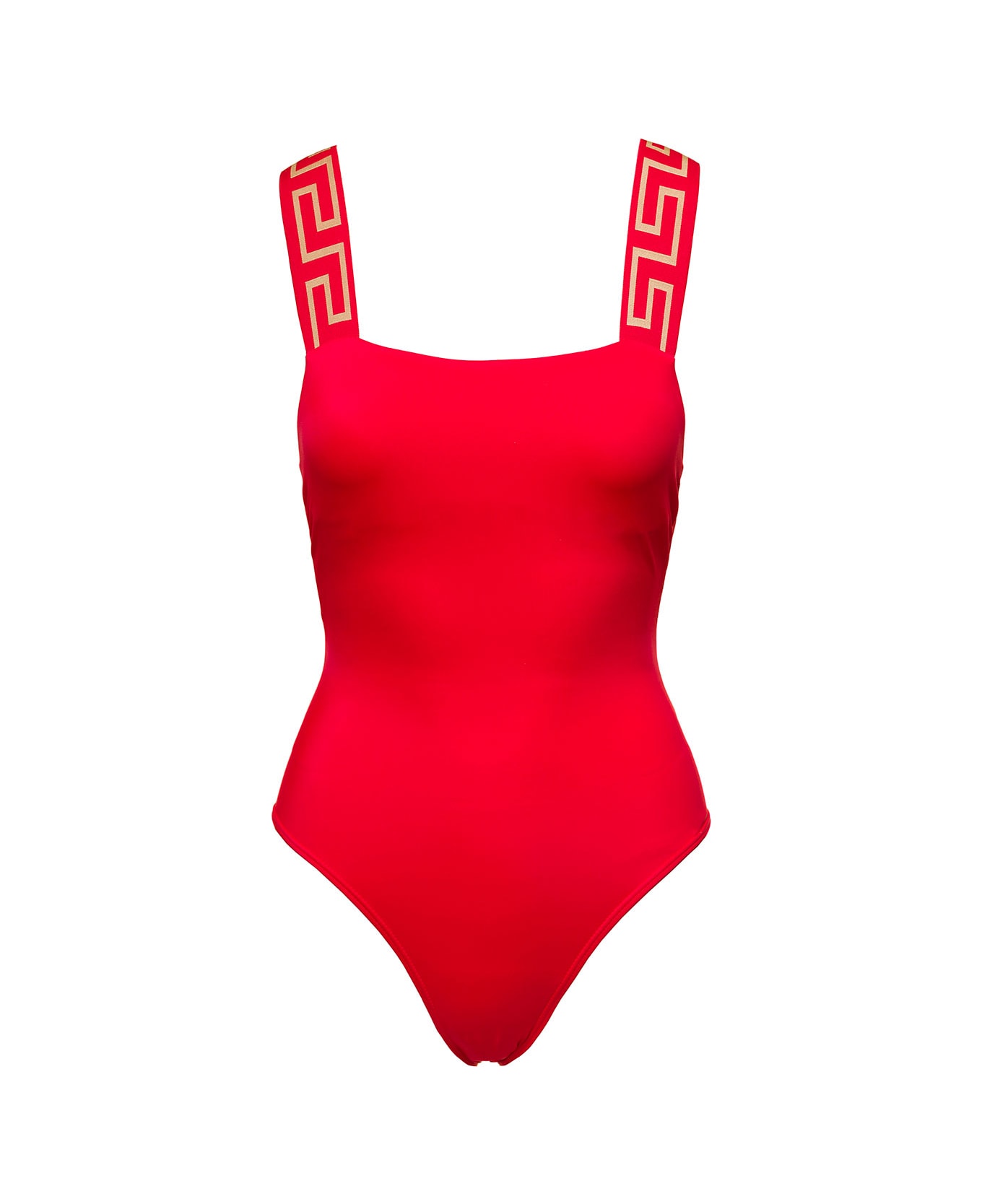 Greca border on shoulder straps