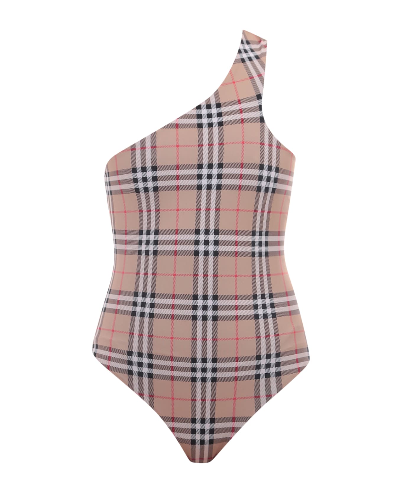 - One Shoulder - Vintage Check Motif - High Leg - Lined - 71% Polyamide 29% Elastane
