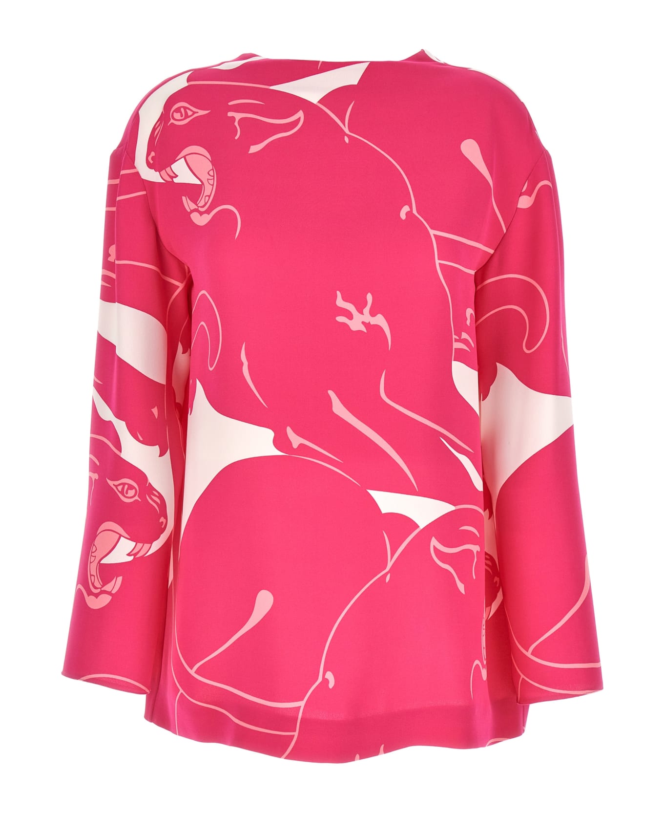 'Panther' cady top with all-over print, soft back neckline, long sleeves. Composition: 100% silk