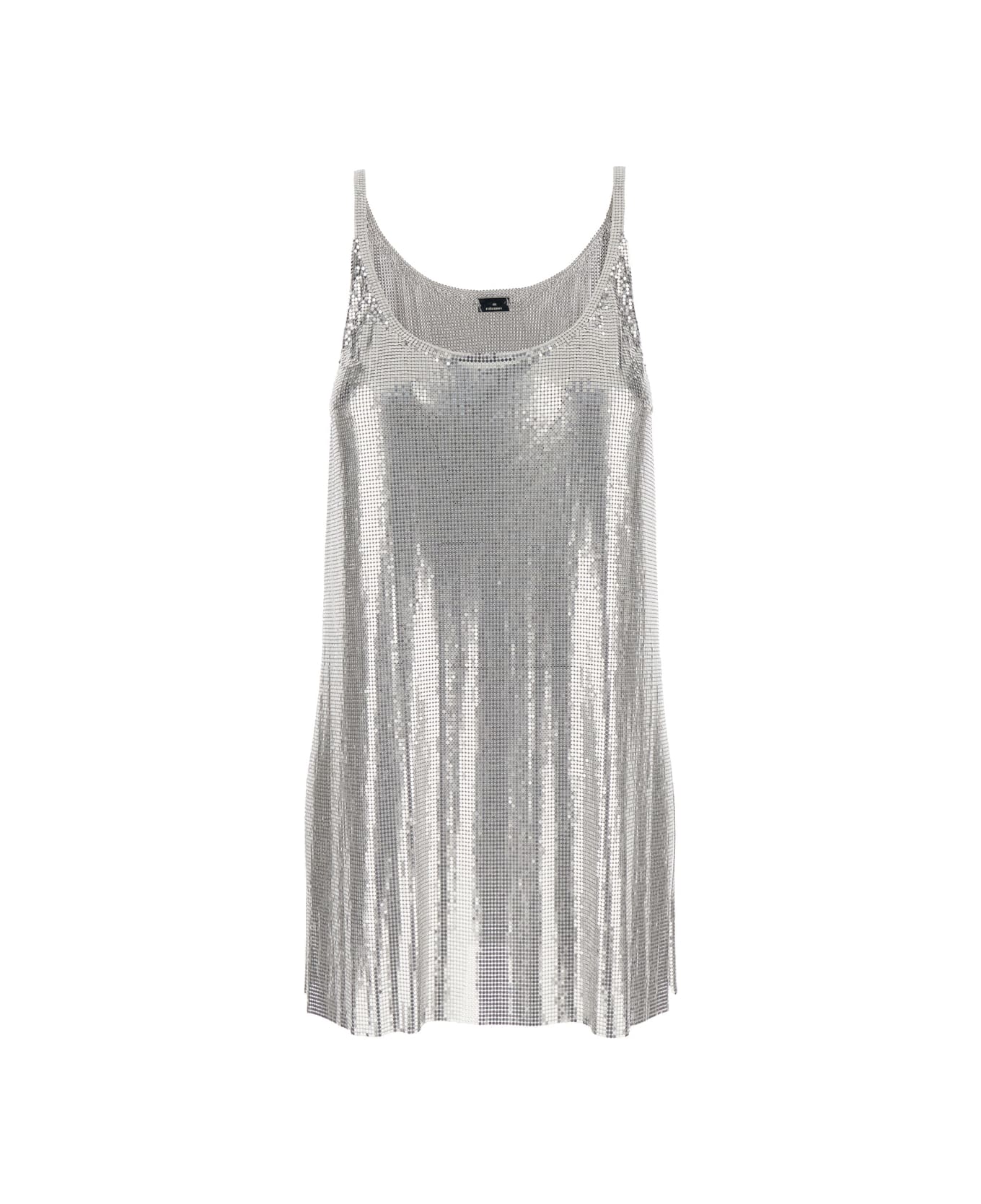 Metallic Sleeveless Top With Spaghetti Straps And Chainmail In Tech Fabric Woman
