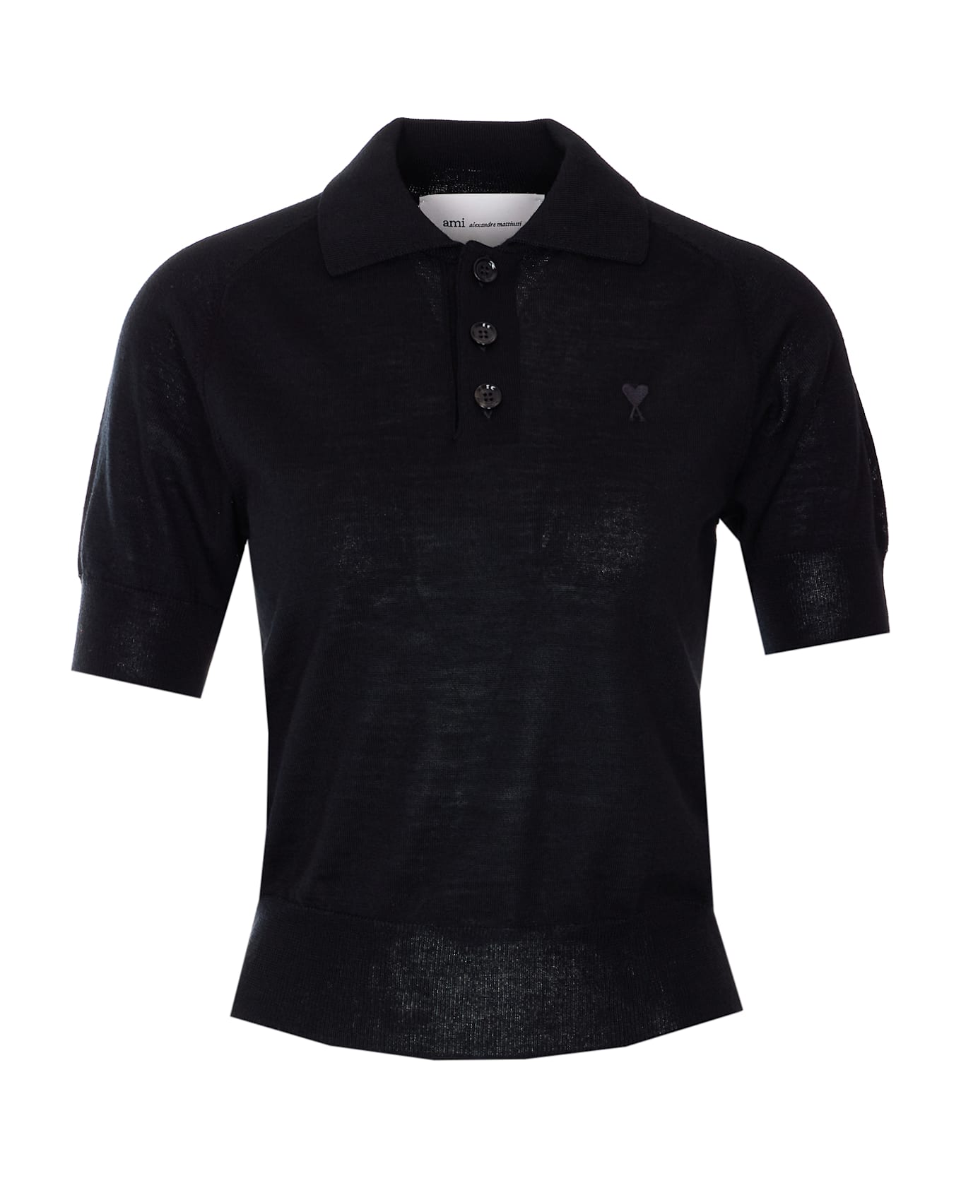 Ami - Alexandre Mattiussi black Ami de Coeur polo, regular collar, buttons closure on the front, embroidered logo on the front Composition: 100% Merino Wool