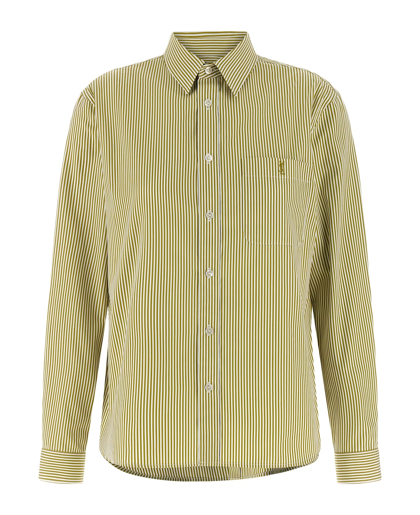 Striped cotton poplin shirt, pointed collar, breast pocket with 'Cassandre' lgoo embroidery, front mother-of-pearl button closure, long sleeves with one-button beveled cuffs, rounded hem. Composition: 100% cotton