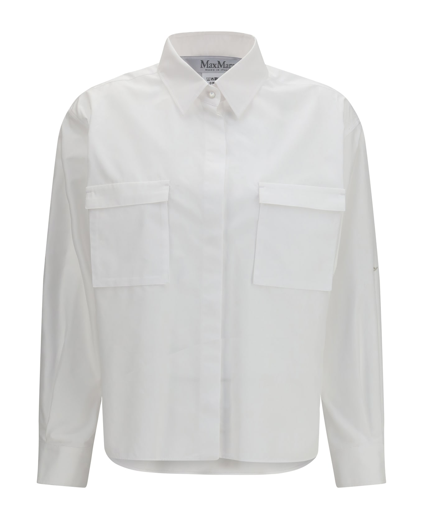 The cotton shirt by max mara stands out for a classic silhouette that interprets the contemporary wardrobe with balance and simplicity. the cotton shirt model by max mara is crafted in cotton and features a french collar and slightly dropped shoulders that define the structure of the garment. the concealed front button fastening keeps the design clean, while patch chest pockets with flap introduce a functional detail. long sleeves with buttoned cuffs and a curved hem complete the cotton shirt by max mara with a natural and versatile silhouette. Composition: 100% % Cotton