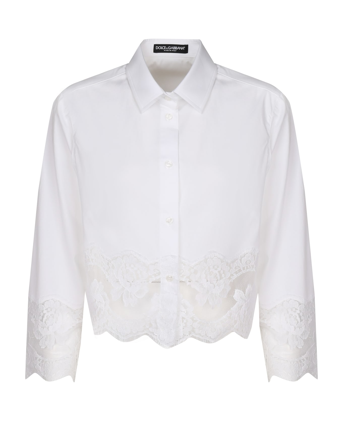 Optical white Crop Shirt With Lace Inserts from Dolce & Gabbana
