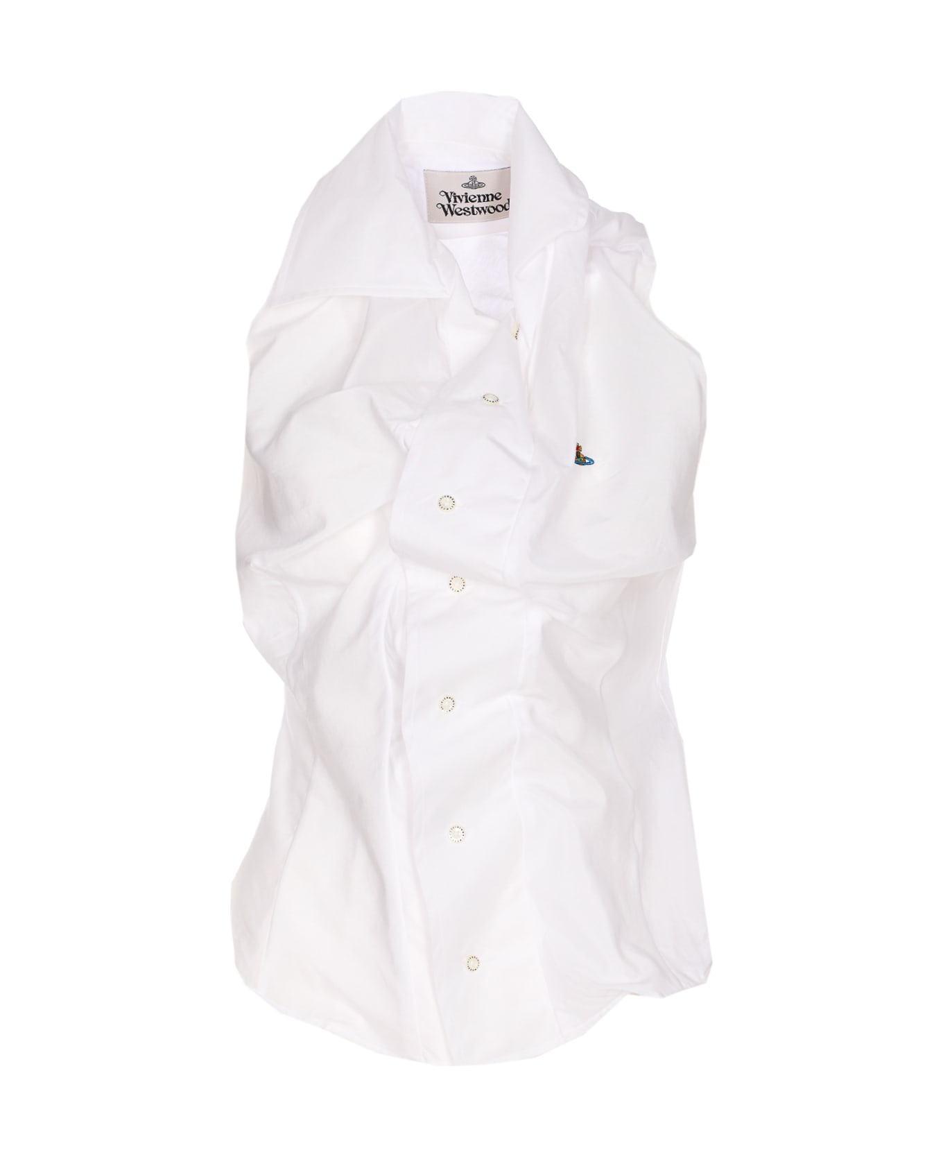 Vivienne Westwood white shirt with frontal buttons closure, regular collar, sleeveless, embroidered Orb logo on the front Composition: 70% Cotton, 30% Silk