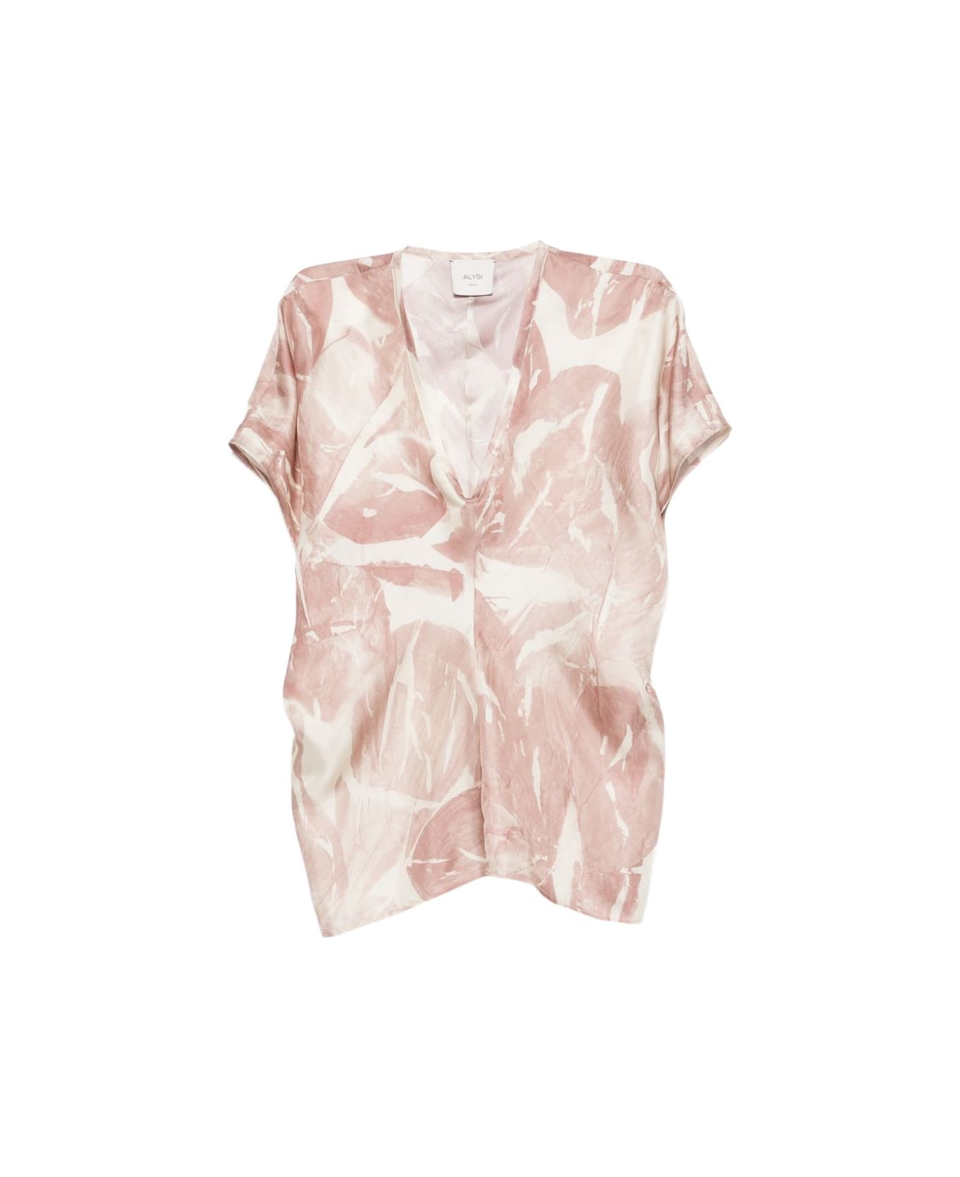 cream and pink printed design V-neck short sleeves