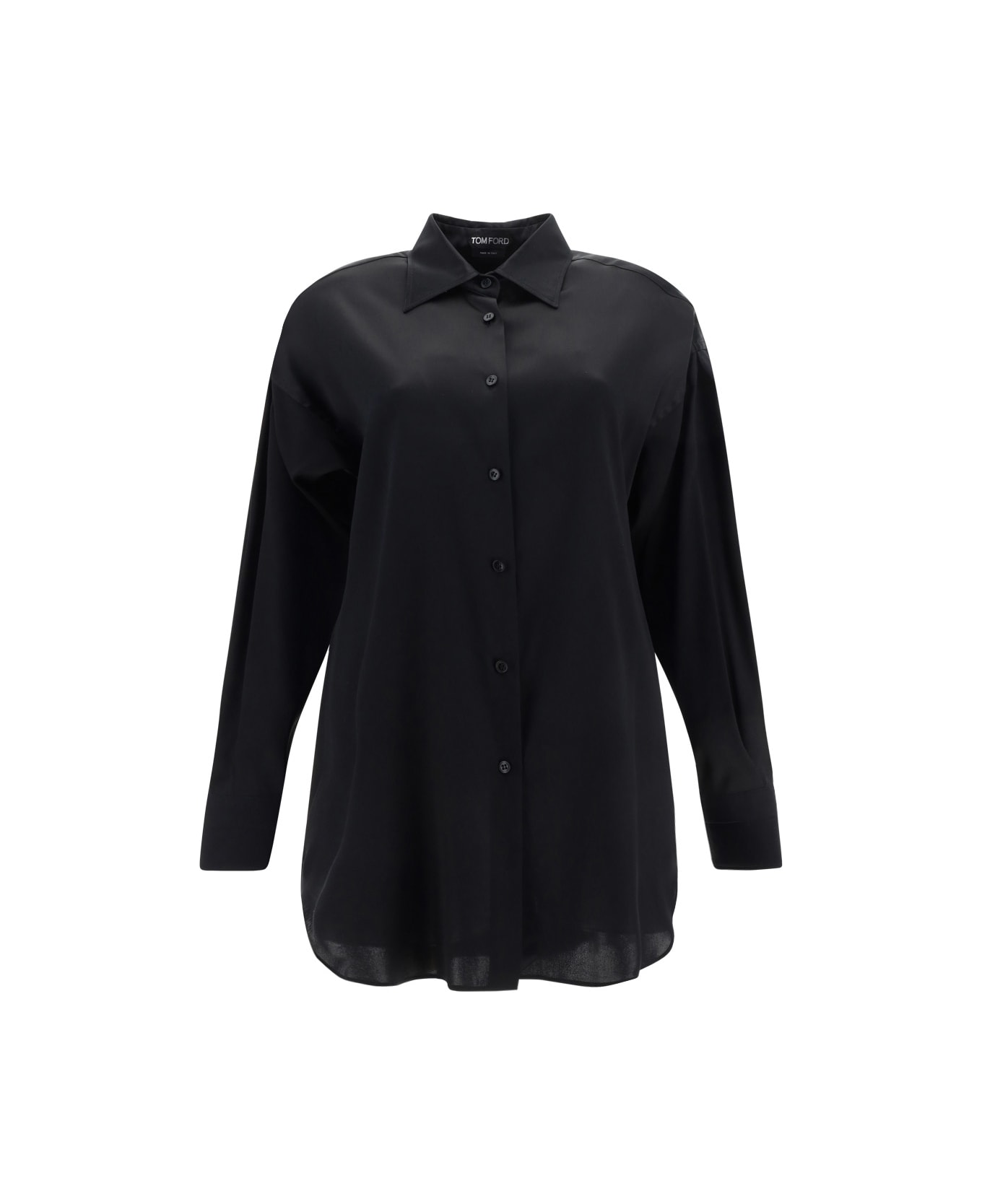 Silk shirt by tom ford, classic collar, front button closure, adjustable button cuffs, oversize fit.