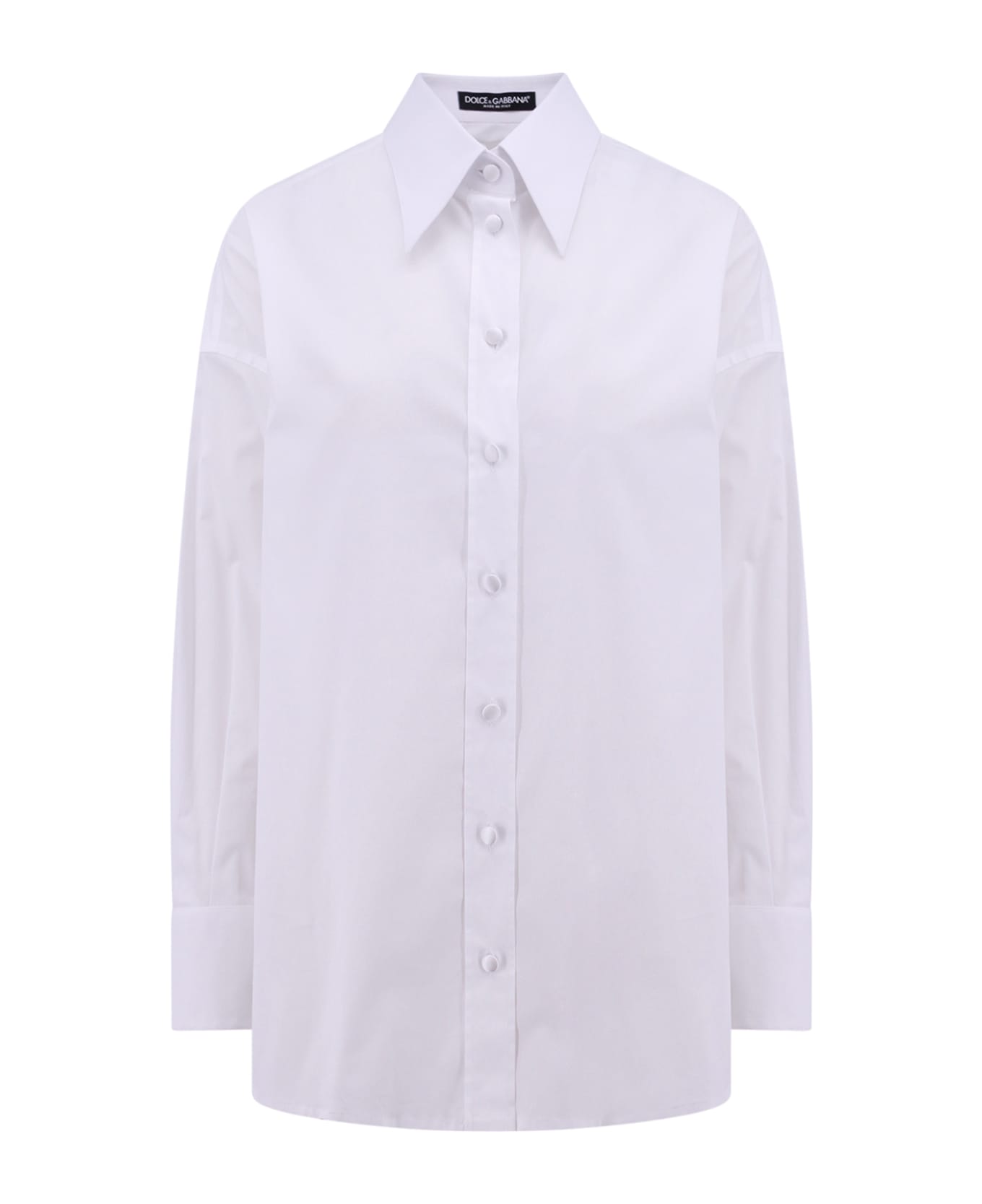 - Pointed Collar - Closure With Satin Covered Buttons - Long Sleeve - Made In Italy - 97% Cotton 3% Elastane