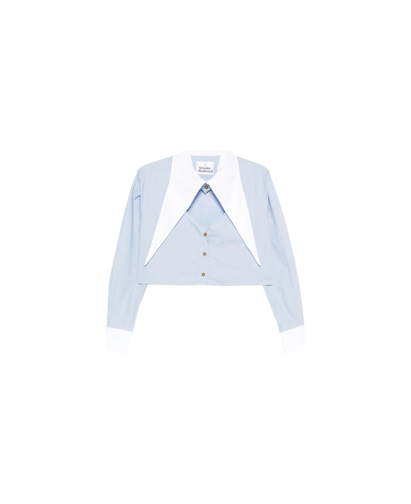 blue white collar front button fastening long sleeves buttoned cuffs cropped hem