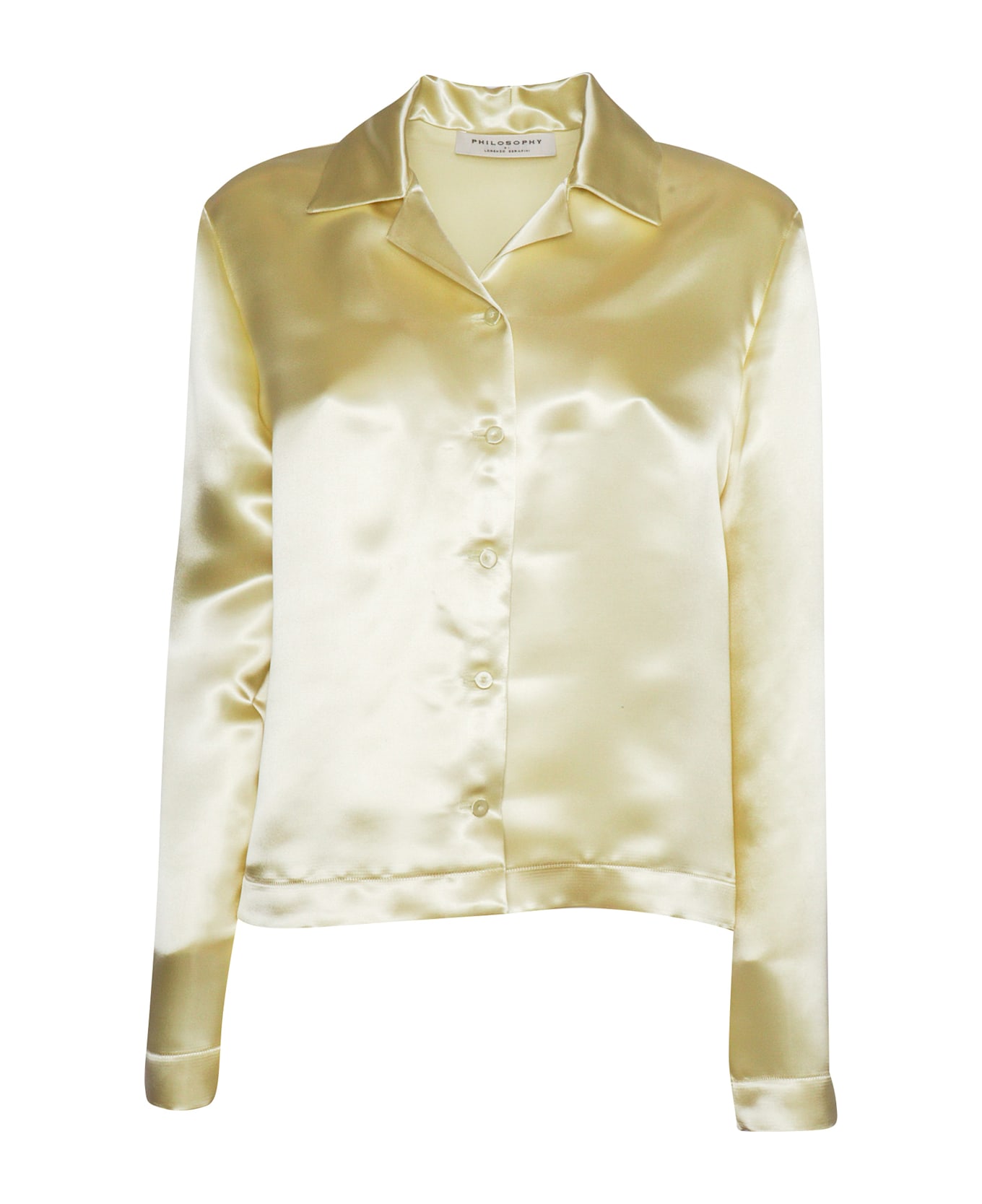 Romantic viscose shirt, signed by Philosophy by Lorenzo Serafini, available in delicate pink and yellow nuances. The light and fluid fabric makes this model perfect for the summer, to be worn on large pants or pleated skirts for a modern bon-ton look.